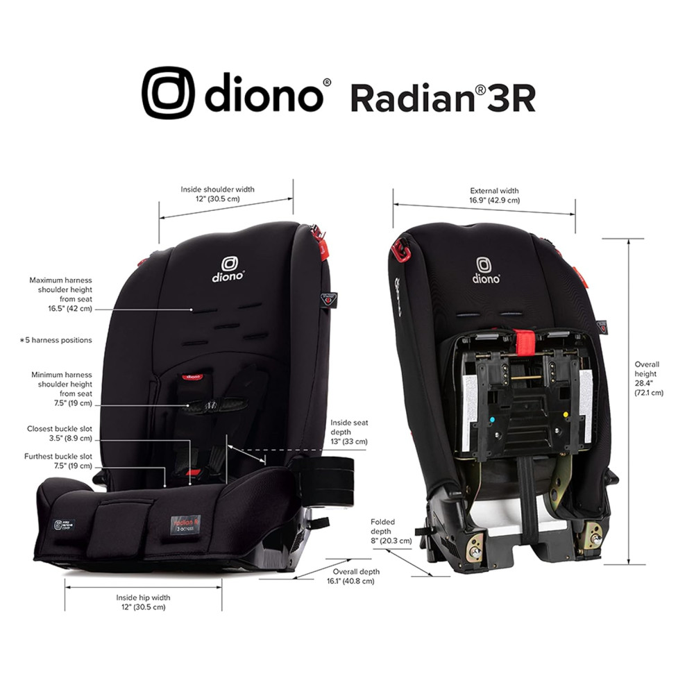Cor Preto. E quando sua família crescer, o design slim fit caberá 3 na maioria dos veículos sem comprometer a segurança das crianças ou o conforto dos passageiros. Como especialista em viagens, a Diono incorporou naturalmente recursos superportáteis ao Radian com dobra para fácil transporte e zenamento e porta copos reforçados com aço para zenar bebidas e lanches essenciais em viagens