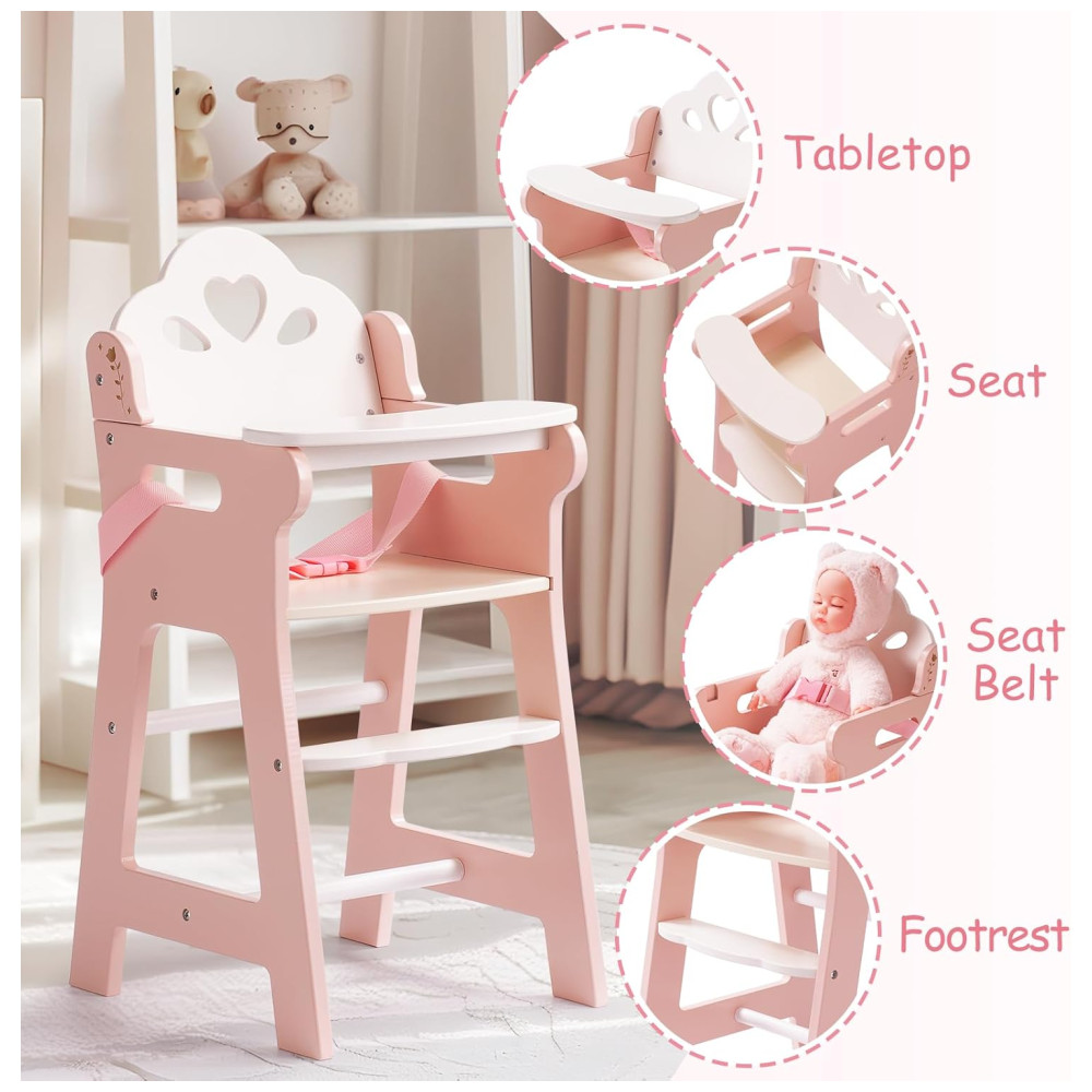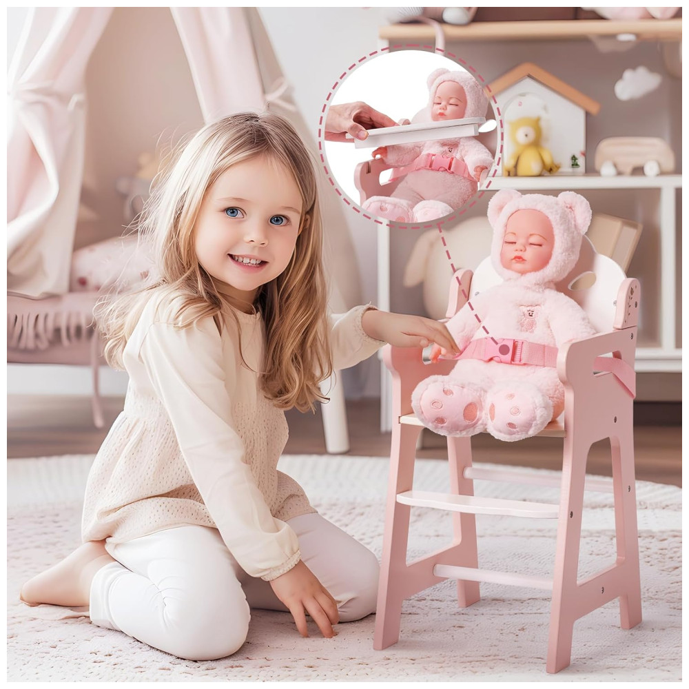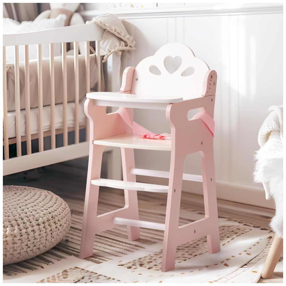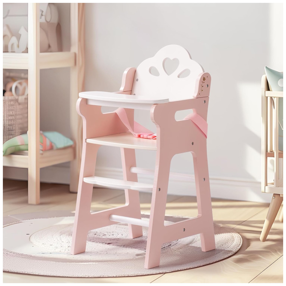 Cadeira de Boneca de Madeira Rosa com Cinto de Segurança e Mesa Removível Ideal para Bonecas de 46 cm – Acessório Encantador!ROBUD