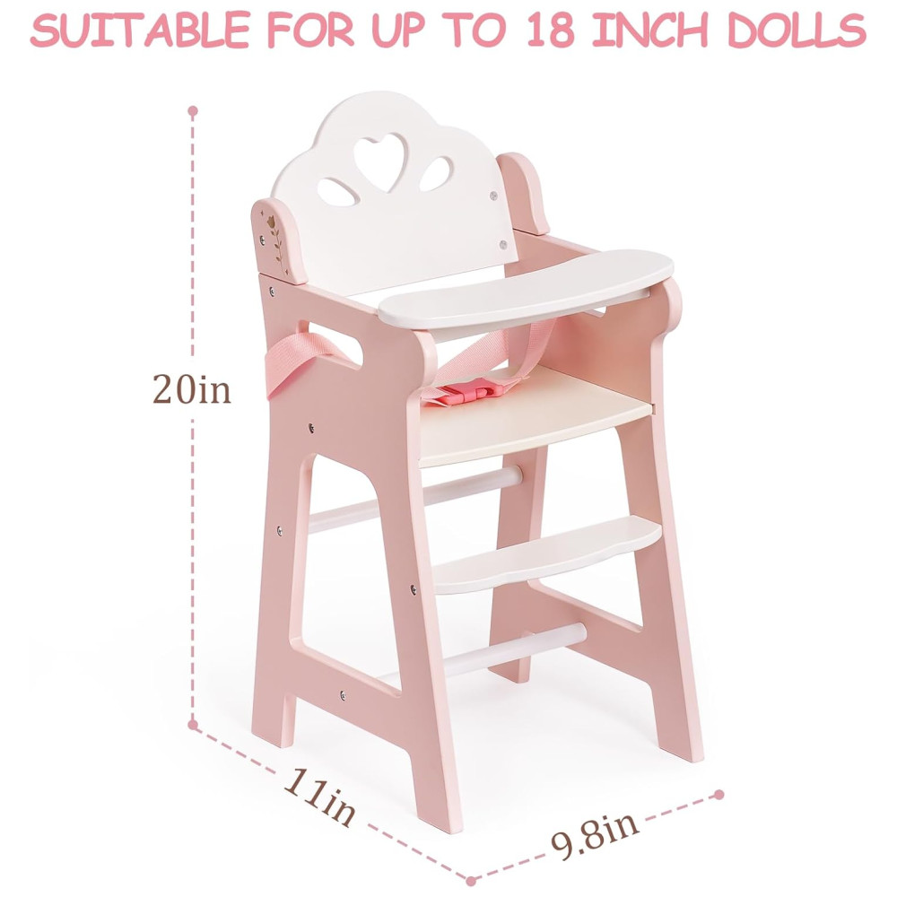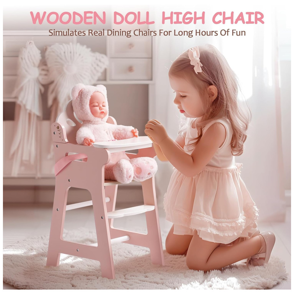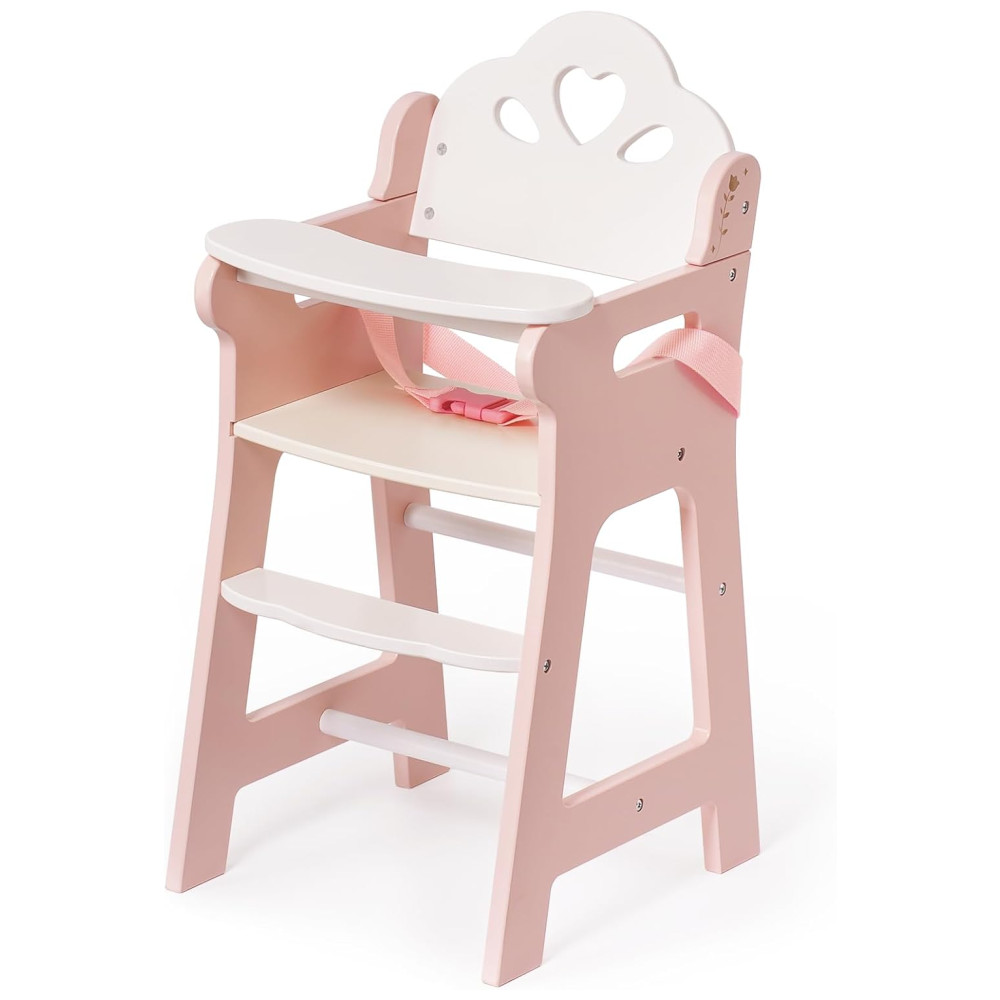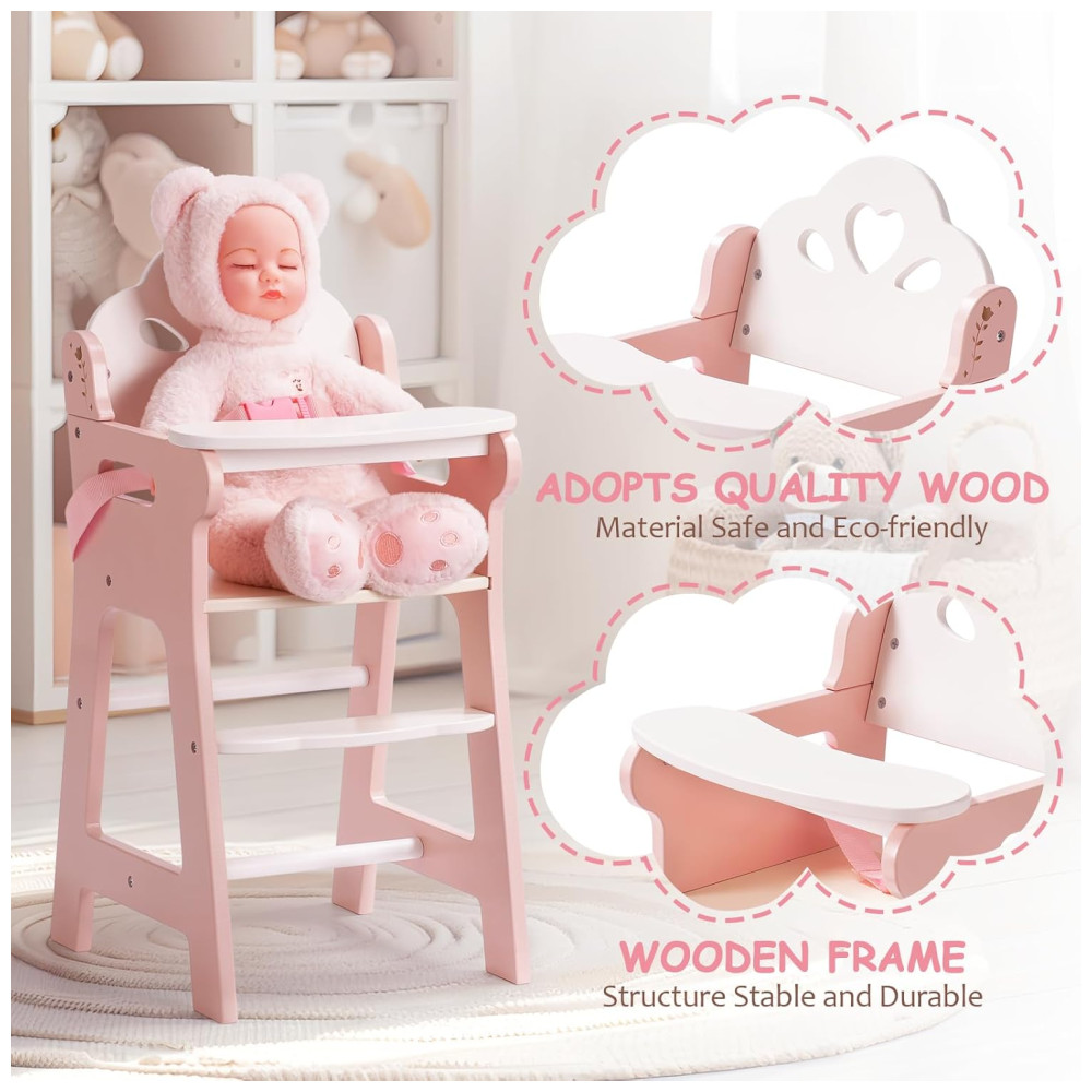 Cadeira de Boneca de Madeira Rosa com Cinto de Segurança e Mesa Removível Ideal para Bonecas de 46 cm – Acessório Encantador!ROBUD