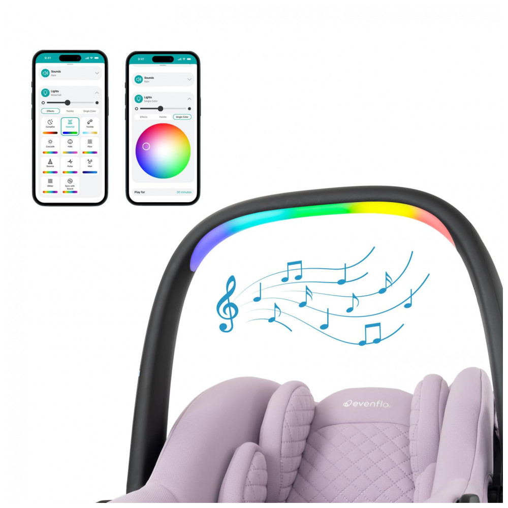 A Cadeira de Carro Infantil Giratória Evenflo Revolve180 LiteMax NXT com tecnologia Sensorial Soothe tem tudo o que você precisa. Para bebês com peso de 1,36 kg a 13,6 kg e altura de 39,9 cm a 81,3 cm, esta cadeirinha oferece rotação de 180 graus com uma mão para facilitar a entrada e saída. A tecnologia Sensorial Soothe acalma o seu bebê com luzes, música e sons integrados na alça da cadeirinha, proporcionando um show de luzes hipnotizante através do aplicativo Evenflo em seu telefone! A tecnologia SensorSafe adiciona uma camada de proteção para tranquilidade, alertando você sobre 4 condições potencialmente inseguras da cadeira do seu filho. O sistema de tensionamento de cinto LockStrong garante uma instalação sólida e segura rapidamente, enquanto a tecnologia SecureTight ajuda a obter uma instalação mais firme com até 50% menos esforço. O Tecido Verde Gentil sustentável é feito de garrafas plásticas recicladas, livre de produtos químicos adicionados e retardantes de chama – mais um motivo para se sentir bem. Compatível com o acessório ajustável SafeZone Load Leg, uma perna de suporte ajustável com indicadores fáceis de ler que ajuda a estabilizar a base da cadeirinha limitando rotações e reduzindo as forças de impacto em caso de acidente, vendido separadamente. A Evenflo vai além dos padrões governamentais para criar cadeiras de carro seguras. O Revolve180 LiteMax NXT atende ou excede todos os padrões de segurança federal aplicáveis, bem como os padrões federais de impacto lateral efetivos a partir de junho de 2025. Além dos testes exigidos pelo governo, é testado quanto à integridade estrutural, resistência a capotamento e resistência a temperaturas.