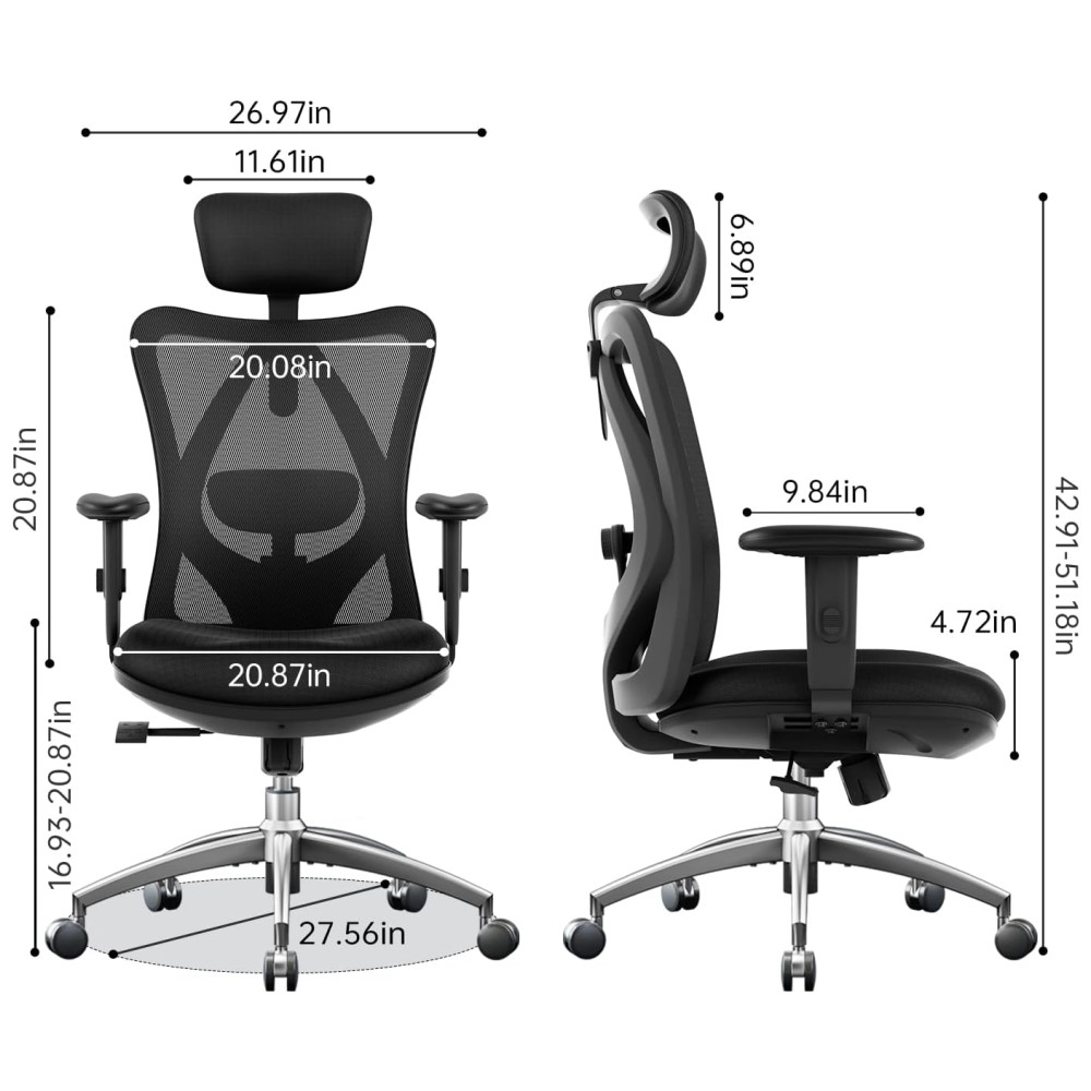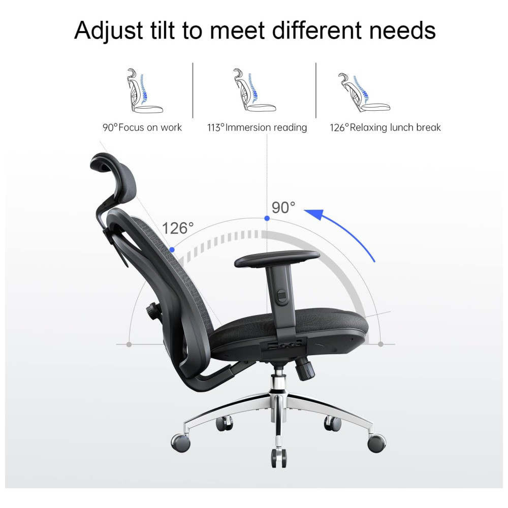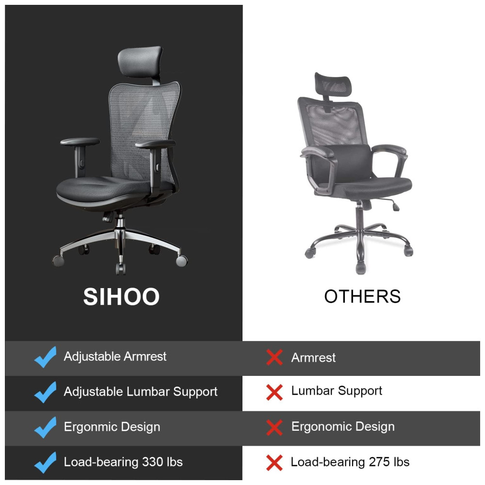 Cadeira de Escritório Ajustável Ergonômica com Apoio de Braço SIHOO M18 014 Preto