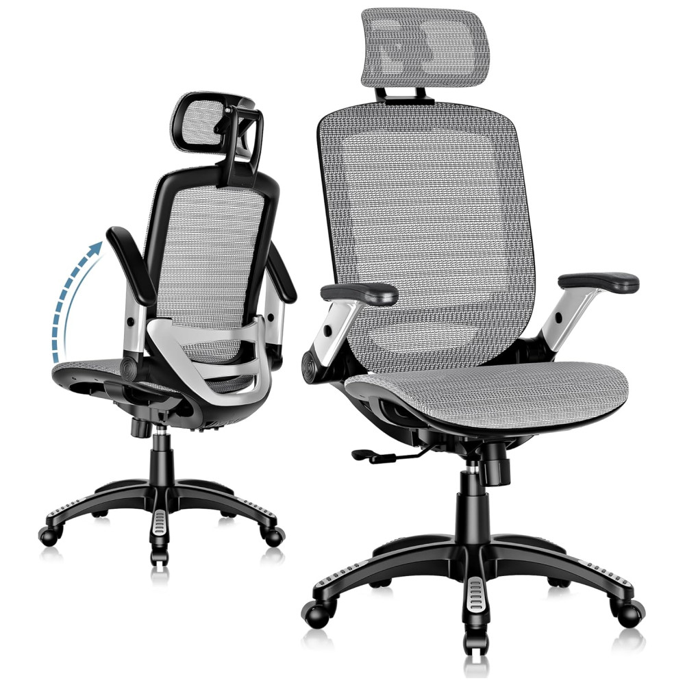 Cadeira de Escritório Ajustável Ergonômica Giratória GABRYLLY Cinza