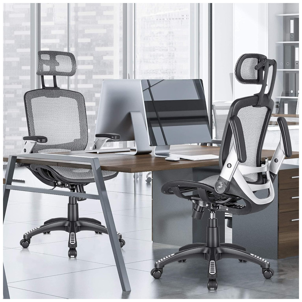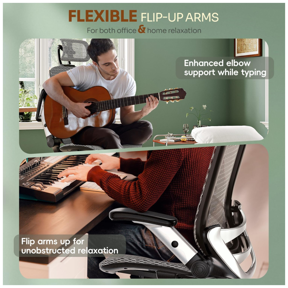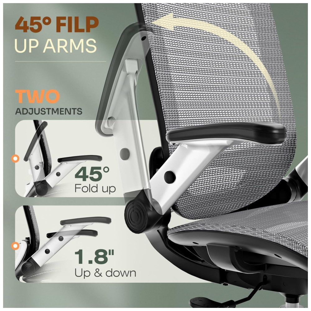 APOIO DE BRAÇO AJUSTÁVEL FLIP UP Ao dobrar os apoios de braço você pode empurrar a cadeira de escritório executiva diretamente para baixo da mesa para usar mais área É fácil levantar ou abaixar o apoio de braço dobrável pressionando os botões pretos no apoio de braço