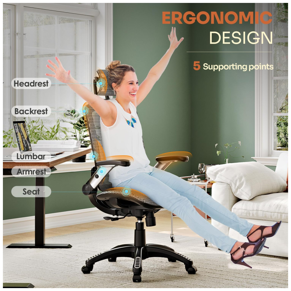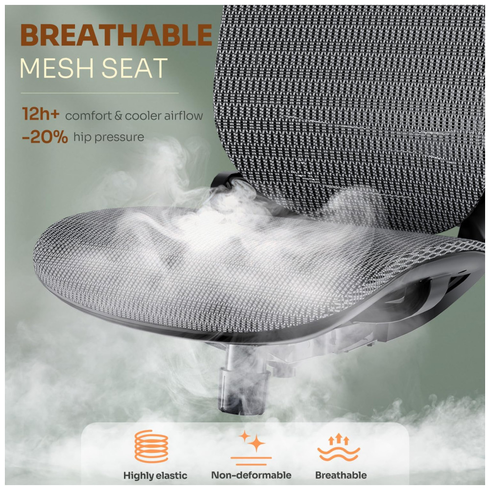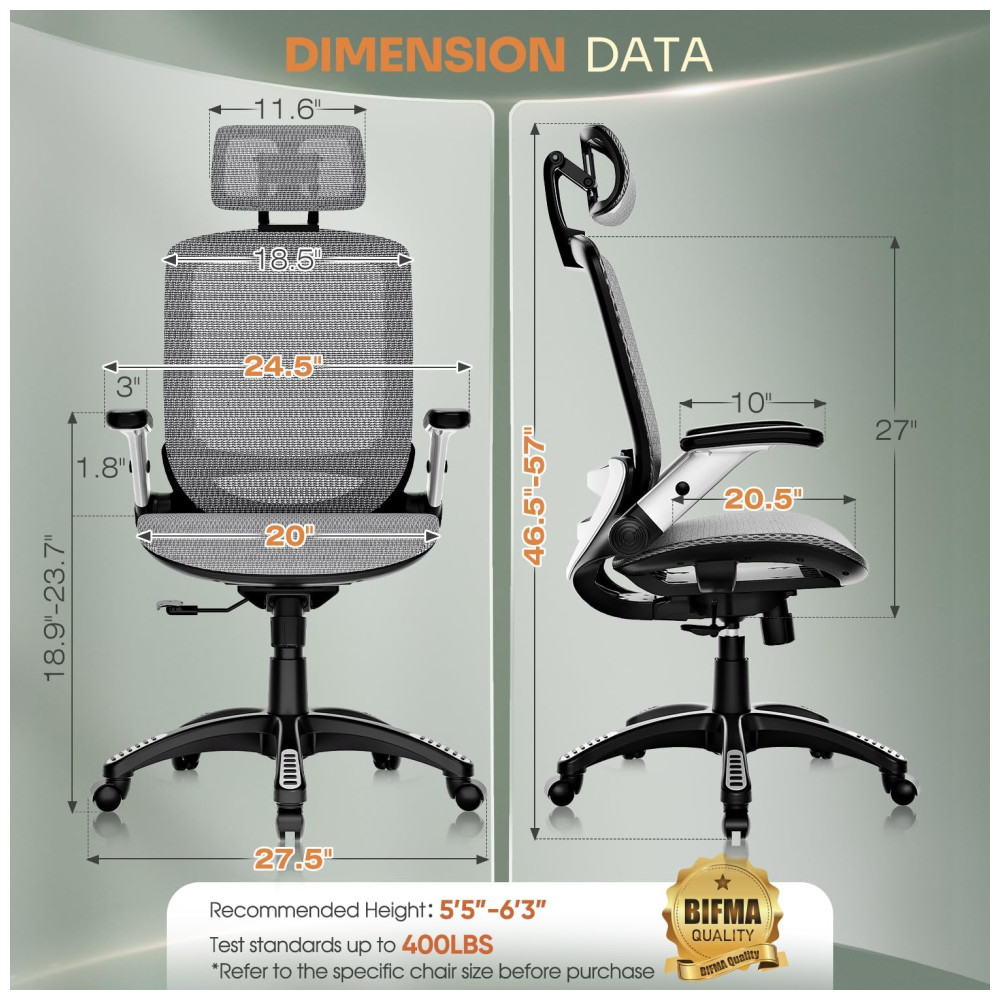 CADEIRA DE MALHA RESPIRÁVEL A parte de trás e o assento de rede mantêm a circulação de ar para um maior conforto A malha de alta qualidade resiste à abrasão e à transformação tornando a cadeira de mesa de computador com encosto alto boa para sentar por 4 a 8 horas Rodas mute PU rolam suavemente sem danos no piso de madeira a base resistente de cinco pontas e a estrutura da cadeira adicionam durabilidade e aparência elegante