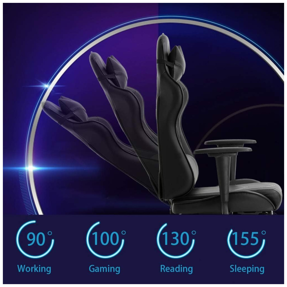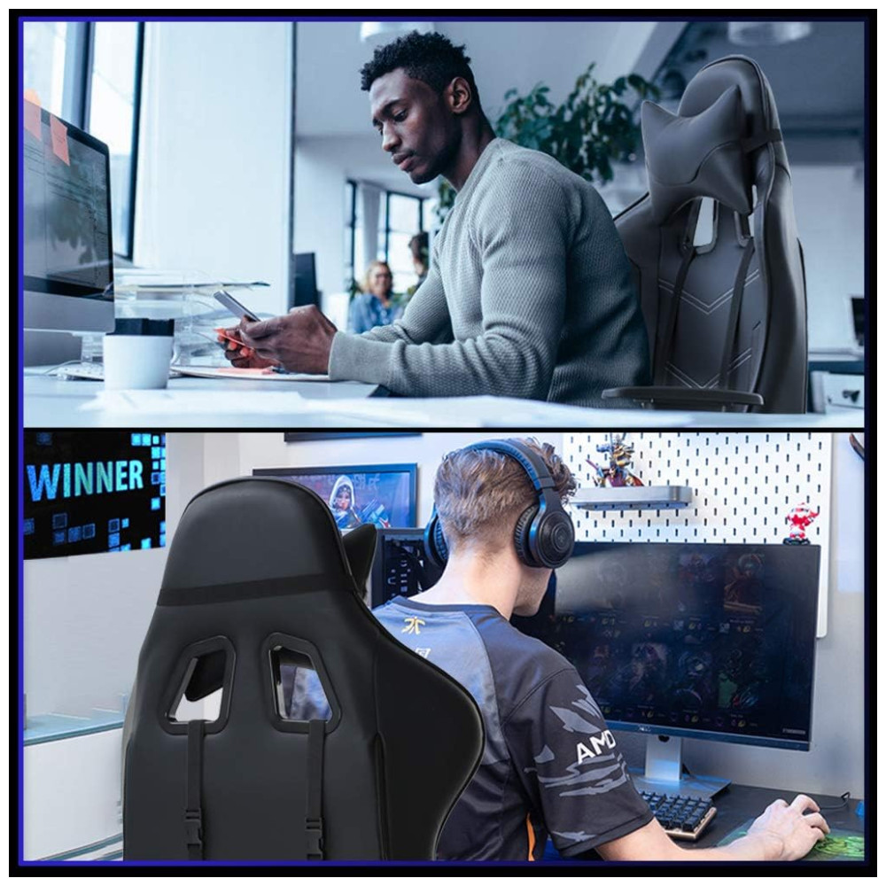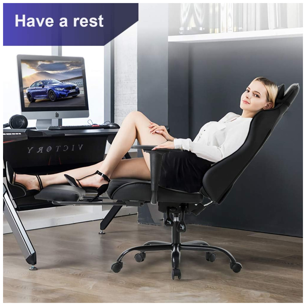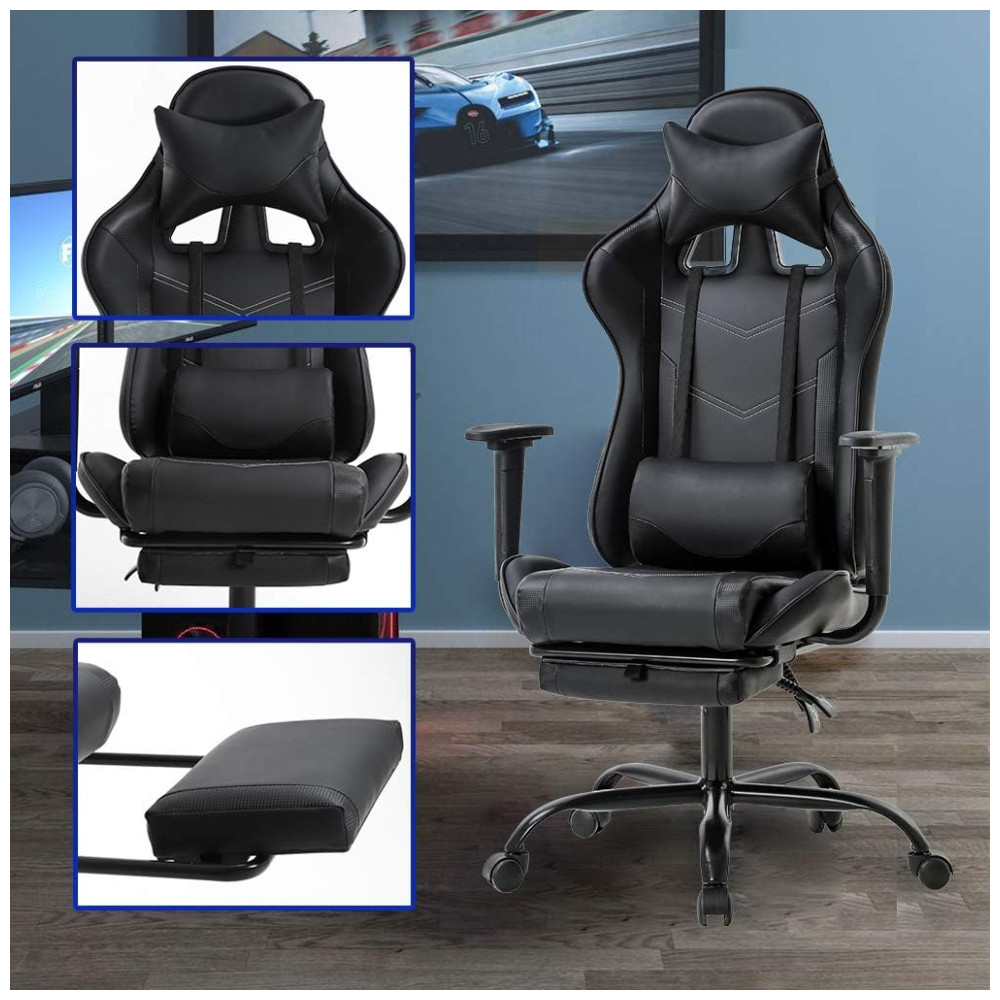 FÁCIL DE CONFIGURAR Nossa cadeira de jogos vem com todo o hardware e ferramentas necessárias. A cadeira de escritório tem componentes de nível , suporta até 250 libras. Siga as instruções, você achará fácil de montar e a cadeira de mesa estima o tempo de montagem em cerca de 10 a 15 minutos. Cadeira de escritório para jogos. EXTRA CONFORTO COM APOIO PARA OS PÉS Apresentamos esta nova cadeira de jogos com encosto alto com uma aparência única e densamente acolchoada para o máximo conforto. Cadeira para jogos, cadeira de escritório, cadeira de escritório. CADEIRA DE ESCRITÓRIO MULTIUSOS Cadeira de jogos ergonômica coberta por couro PU premium respirável com suporte lombar livremente ajustável e travesseiro de apoio de cabeça protegendo sua coluna vertebral e pescoço. E o mais importante, travando em qualquer posição ao reclinar, tenha o ângulo de 90 a 155 graus. Cadeira de escritório cadeira de mesa para jogos. NOVEL DESIGN A cadeira de escritório é projetada com construção ergonômica orientada para o ser humano que dura muito, e a cadeira de jogos tem base de metal resistente que passa pelo BIFMA com giro de 360 graus e rodízios de rolamento suave de nylon, rolando 100.000, têm grande estabilidade e mobilidade. Cadeira de mesa para jogos, cadeira de escritório. Bom material para dinheiro Nós garantimos que você vai adorar esta cadeira de jogos, mas se você não estiver satisfeito com esta cadeira de escritório, entre em contato conosco. BestOffice melhor serviço para você. Cadeira de escritório cadeira de mesa para jogos.