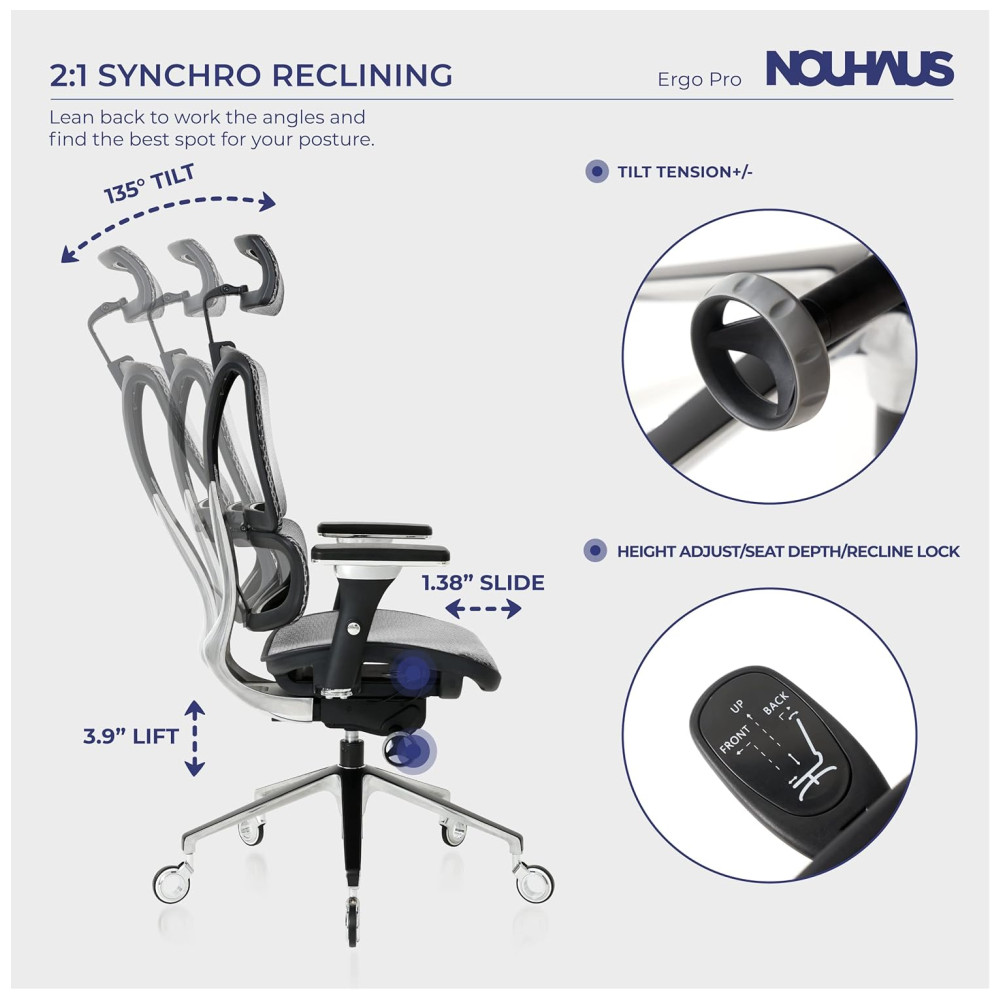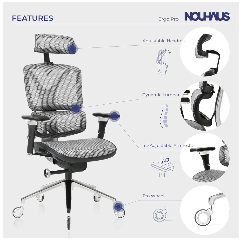 Cadeira de Escritório Ergonômica com Encosto em Malha Nouhaus ErgoPRO Prata