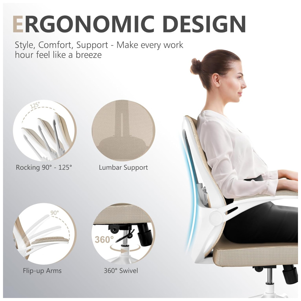 Cadeira de Escritório Ergonômica em Malha Confortável com Rodas Silenciosas balmstar Bege