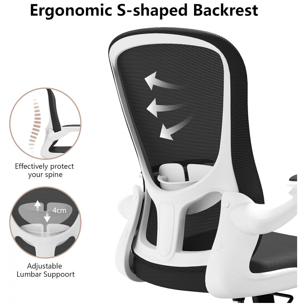 Design ergonômico A cadeira de escritório Silybon foi projetada ergonomicamente para fornecer 3 pontos de apoio costas, quadril, mão e suporte lombar adequado. A altura do assento pode ser facilmente ajustada para atender a diferentes necessidades. Forte estabilidade, mesmo deitado não cairá. Com altura ajustável e rotação livre de 360, esta cadeira de trabalho de malha oferece suporte para relaxamento dos ombros e das costas e pode ser ergonomicamente aprimorada com suporte lombar ajustável e apoios de braços para conforto personalizado.
