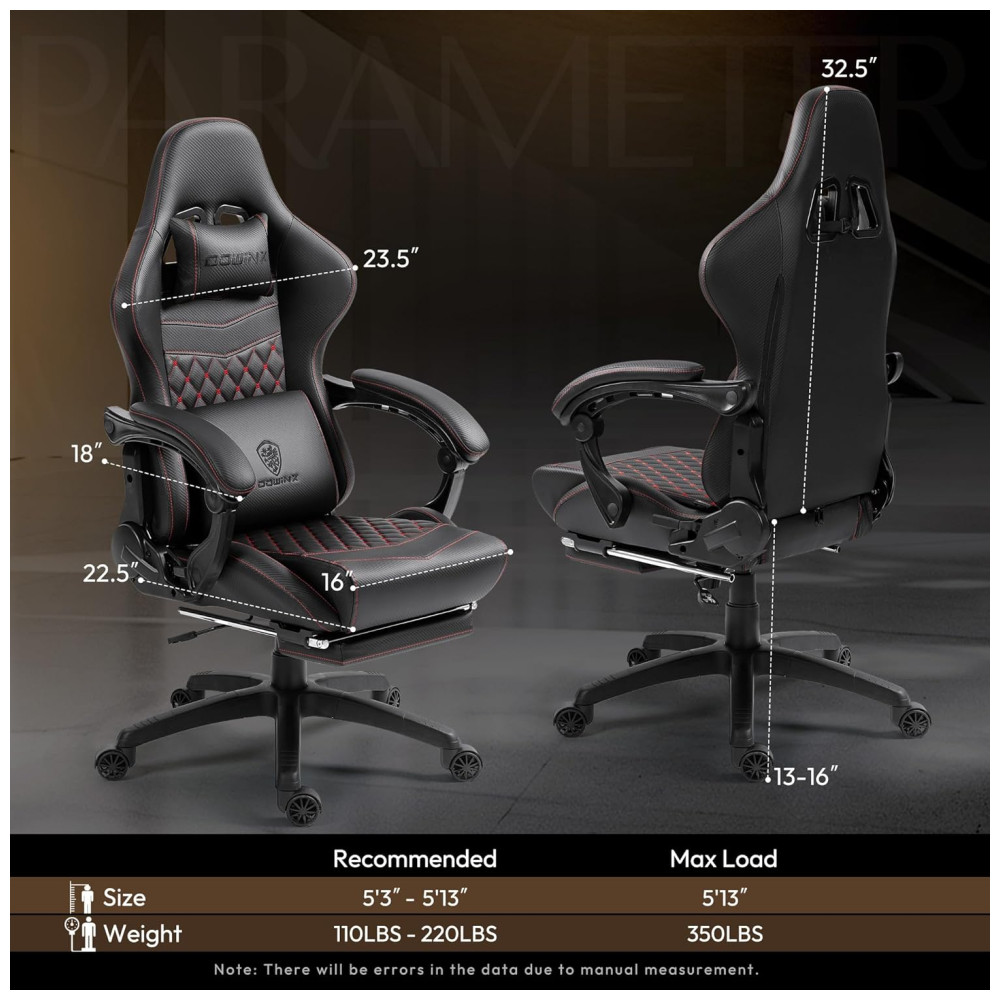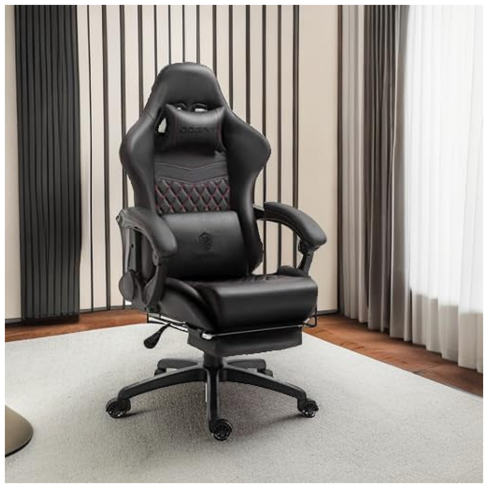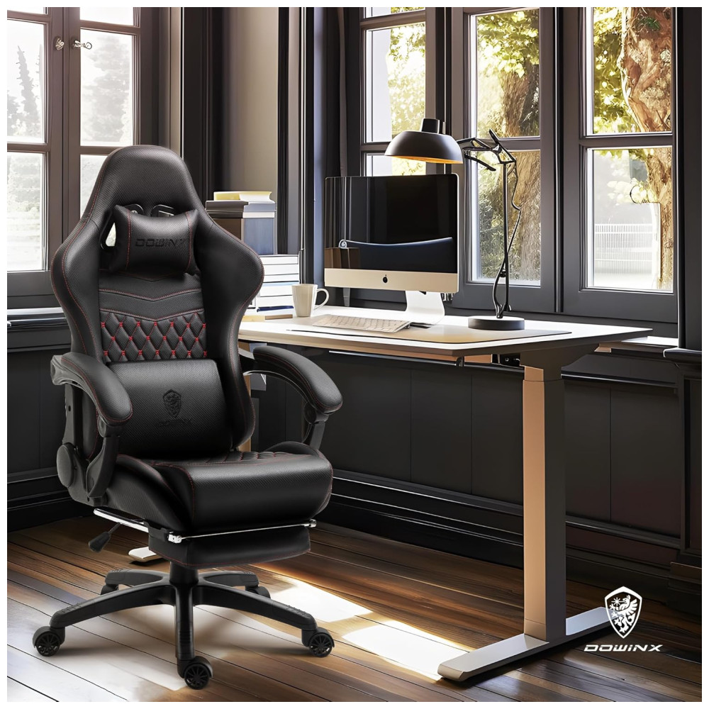 Cadeira de Escritório Gamer Giratória e Reclinável com Apoio Lombar DOWINX Preto
