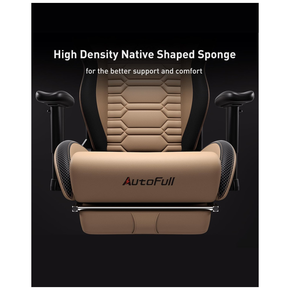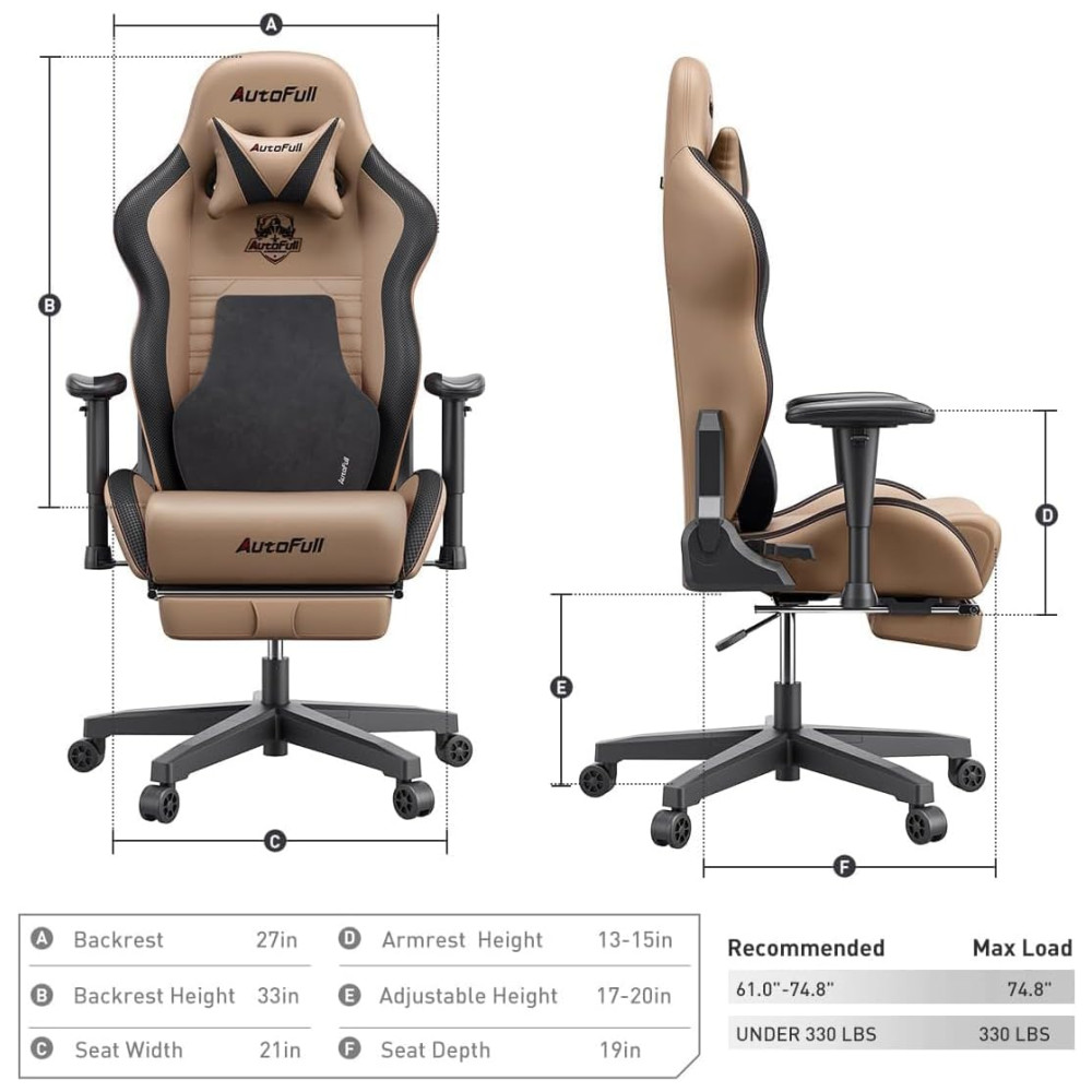ADEQUADO PARA JOGOS E TRABALHO O AutoFull é dedicado a fazer a melhor cadeira de jogos e criar a experiência de jogo mais perfeita para jogadores profissionais. Dimensões 50 x 54 x 119 Dimensões da área de estar 38 x