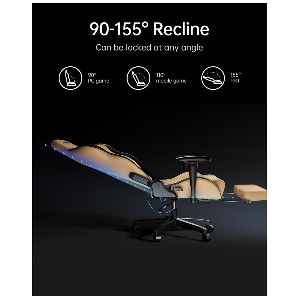 MULTI FUNCTION 360 giro, encosto da cadeira pode ser reclinado em qualquer ângulo entre 90 170 para trabalhar, jogar, ler ou cochilar, apoio de cabeça ajustável de altura de e travesseiro lombar, apoio para os pés retrátil, tudo para encontrar seu posição mais confortável.