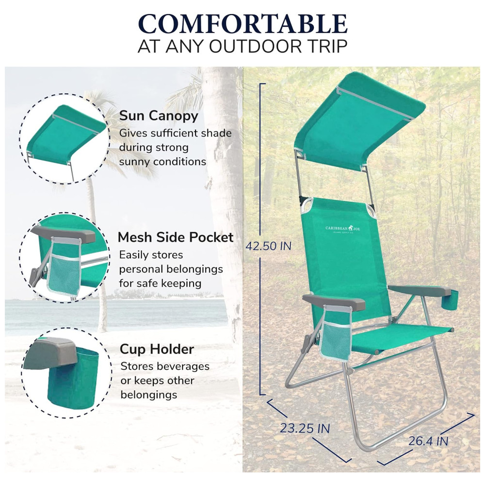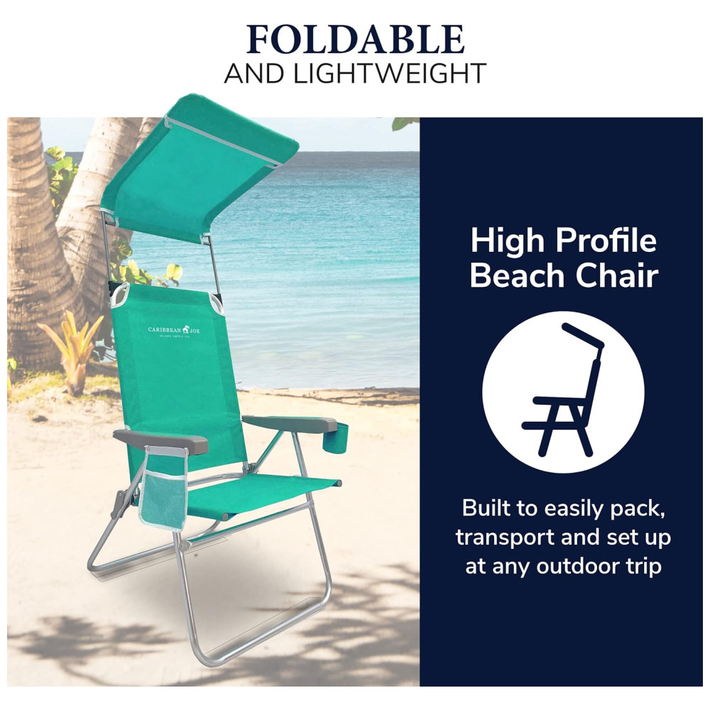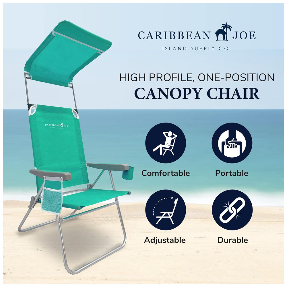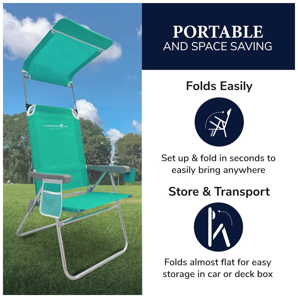 Cadeira de Praia Dobrável com Encosto Alto e Dossel Caribbean Joe Azul Teal
