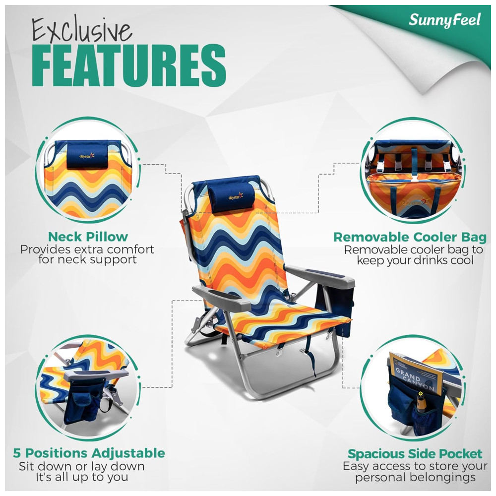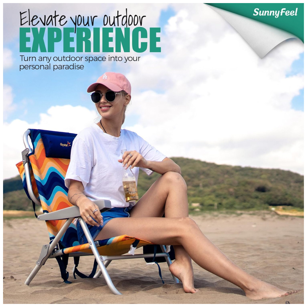 Versátil e resistente, esta cadeira de praia tipo mochila é perfeita como cadeira de acampamento, cadeira dobrável, cadeira de gramado, cadeira de viagem, cadeira de praia e muito mais. Adequada para aventuras ao ar livre, pesca, piqueniques, eventos esportivos, viagens de carro ou simplesmente para relaxar no quintal, cabine ou varanda. A cadeira de campismo SunnyFeel é um acessório essencial para completar suas experiências de acampamento.
