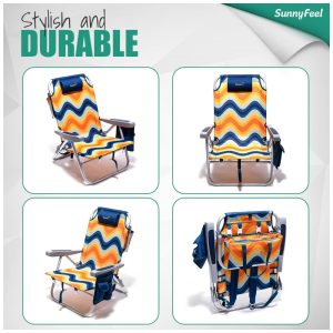 Versátil e resistente, esta cadeira de praia tipo mochila é perfeita como cadeira de acampamento, cadeira dobrável, cadeira de gramado, cadeira de viagem, cadeira de praia e muito mais. Adequada para aventuras ao ar livre, pesca, piqueniques, eventos esportivos, viagens de carro ou simplesmente para relaxar no quintal, cabine ou varanda. A cadeira de campismo SunnyFeel é um acessório essencial para completar suas experiências de acampamento.