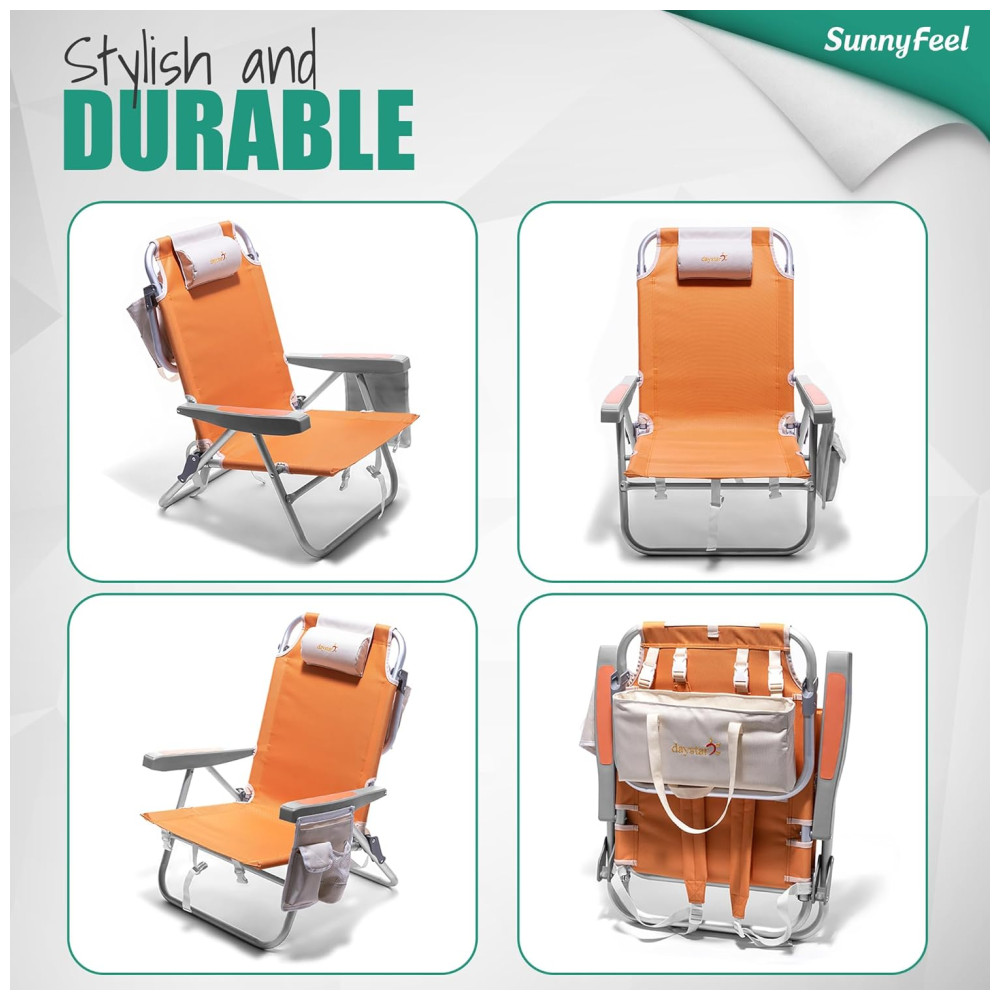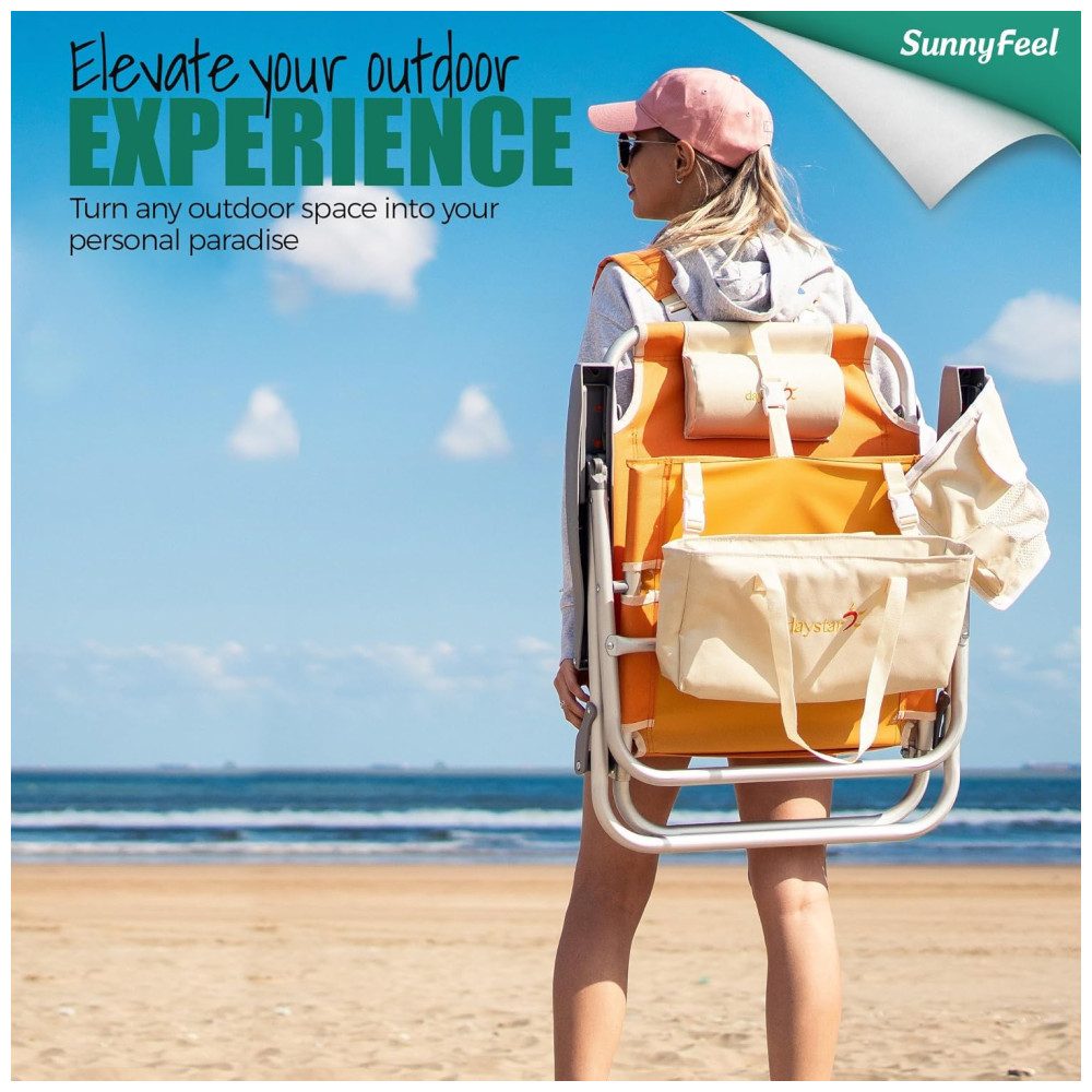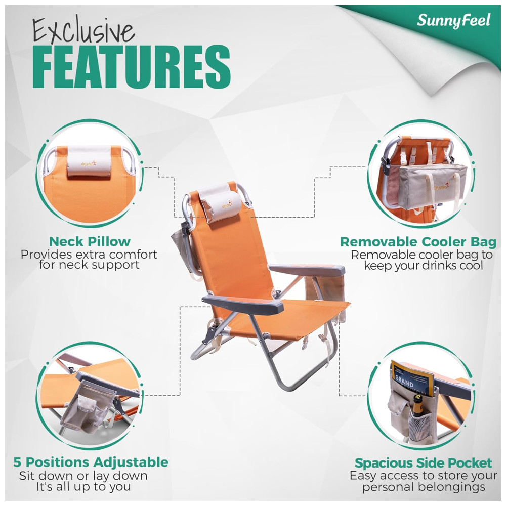 Cadeira de Praia Portátil com 5 Posições e Mochila para Bebidas Sunnyfeel Laranja