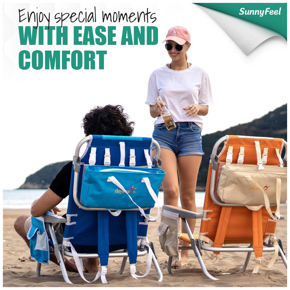 Uma cadeira de praia tipo mochila versátil, perfeita para ser usada como cadeira de acampamento, cadeira dobrável, cadeira de gramado, cadeira de viagem, cadeira de praia e muito mais. Adequada para aventuras ao ar livre, pesca, piqueniques, eventos esportivos, viagens de carro ou simplesmente relaxar no quintal, cabine, varanda, ou festas no gramado do pátio. A cadeira de campismo SunnyFeel é um acessório essencial para aprimorar suas experiências de camping.