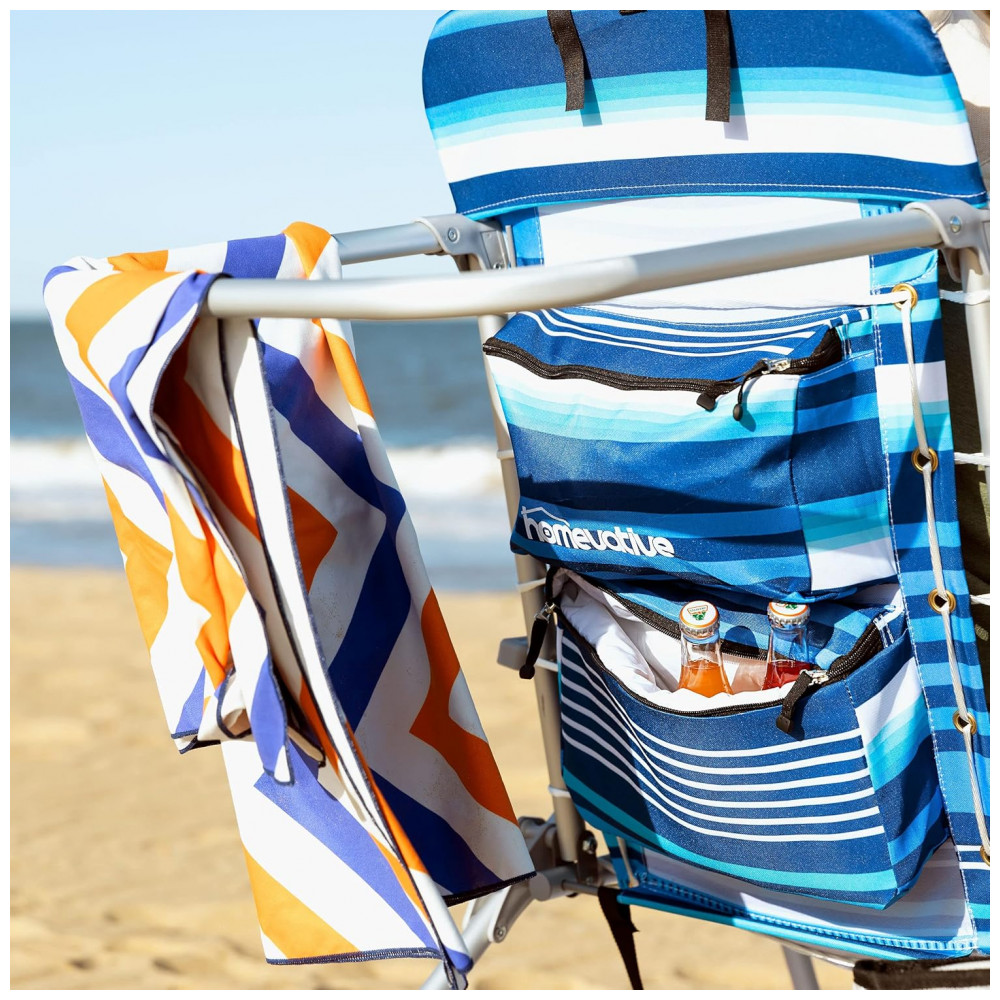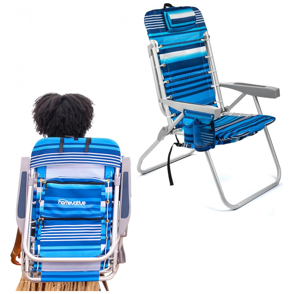 Cadeira de Praia Portátil e Dobrável com 5 Posições e Bolsa de Armazenamento Homevative Azul