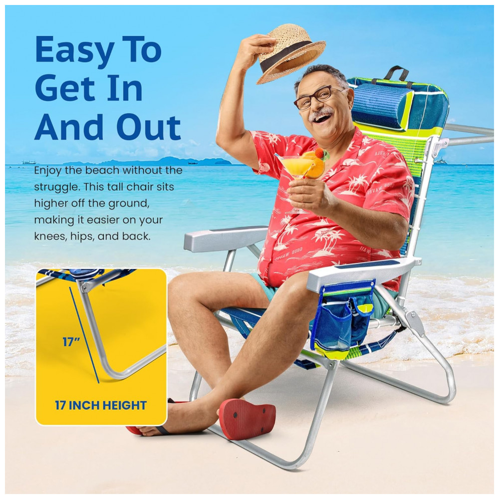 Pequena Pegada: Quando dobrada, a cadeira ocupa pouco espaço, facilitando o armazenamento em casa ou no porta-malas a caminho da praia.
