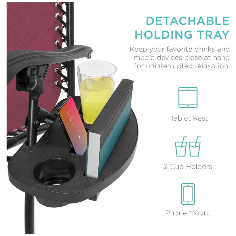 Desfrute de conforto e relaxamento máximo com o Conjunto de 2 Cadeiras de Praia Reclináveis Zero Gravity da Best Choice Products. Seu sistema de reclinação travável desliza suavemente para uma posição ergonômica sem gravidade, se ajustando instantaneamente ao peso do seu corpo. A estrutura leve e dobrável torna fácil transportá-las para qualquer lugar, como parques, praias ou eventos esportivos. A bandeja removível possui dois porta-copos, um suporte para telefone e um suporte para tablet. Com capacidade para até 250 libras, essas cadeiras contam com tecido textilene flexível e de baixo desgaste, garantindo durabilidade. Além disso, incluem encostos acolchoados e ajustáveis para um conforto personalizado. Dimensões abertas: 82.5cm61cm x 63.5cm x 89cm113cm. Dimensões dobradas: 96.5cm x 63.5cm x 15cm. Peso suportado: 113kg.
