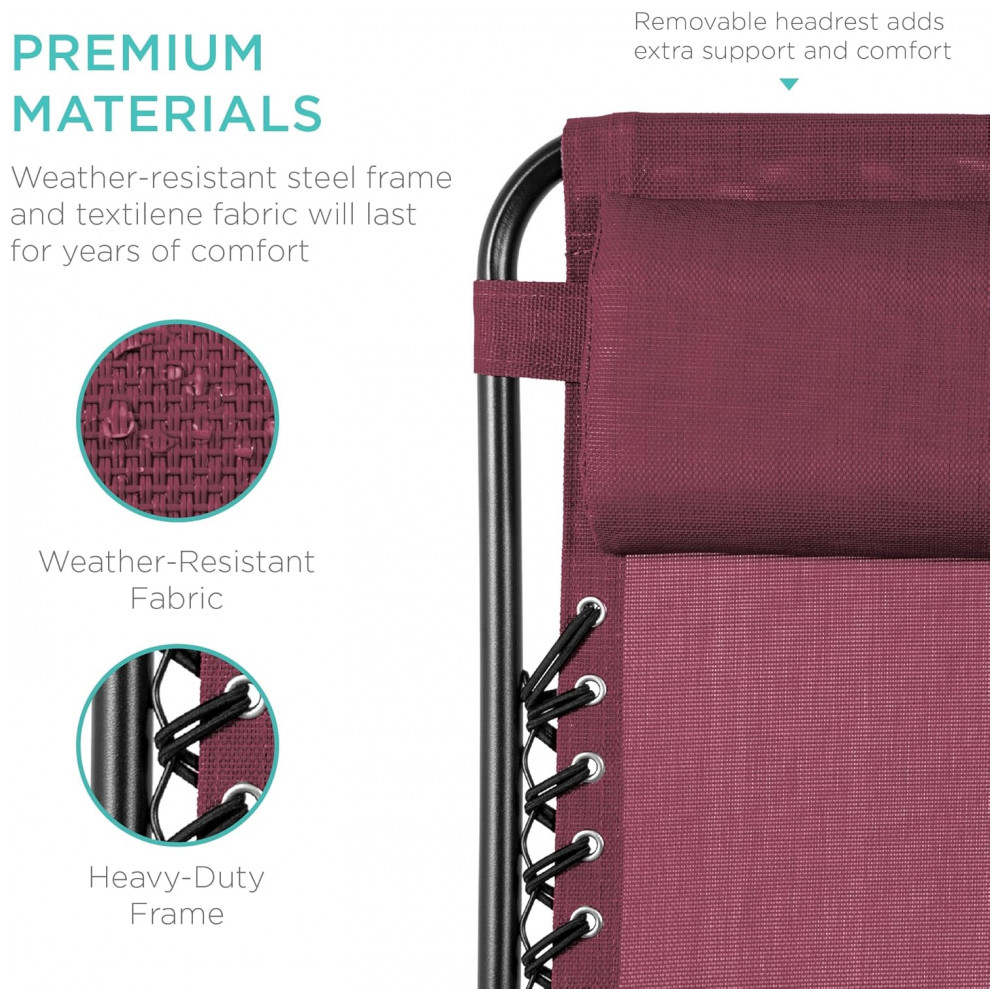 Cadeira de Praia Reclinável Zero Gravity de Malha de Aço Ajustável – Conjunto de 2 – BorgonhaBest Choice Products