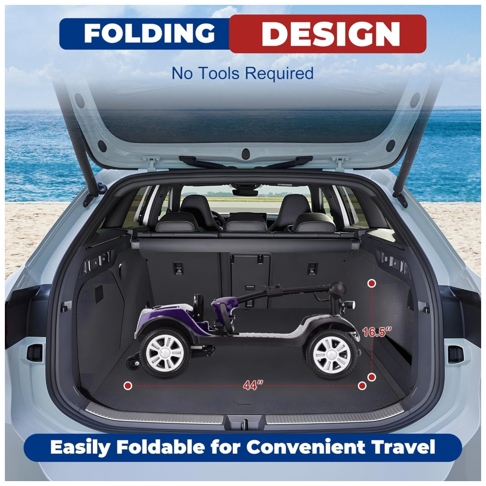 Portátil e dobrável – A scooter pode ser desmontada em 4 partes, sendo a peça mais pesada com 27 kg. Compacta o suficiente para caber no porta-malas do carro, perfeita para viagens e conveniência no dia a dia.