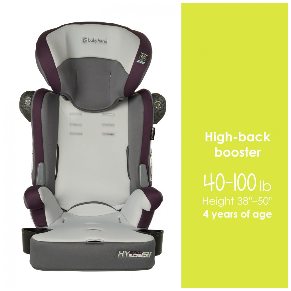 Cadeira de Segurança Híbrida Baby Trend Hybrid SI 3 em 1 com Proteção contra Impactos Laterais – Estilo Dash Plum