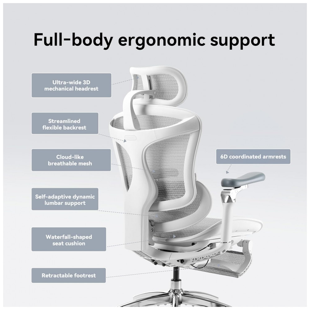Cadeira Ergonômica de Escritório SIHOO Doro C300 Pro com Apoia-pés Cinza Braços 6D Ultra Macios Apoio Lombar Dinâmico Assento Ajustável Modelo C300 Pro