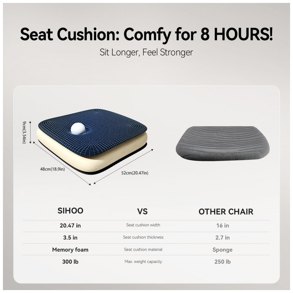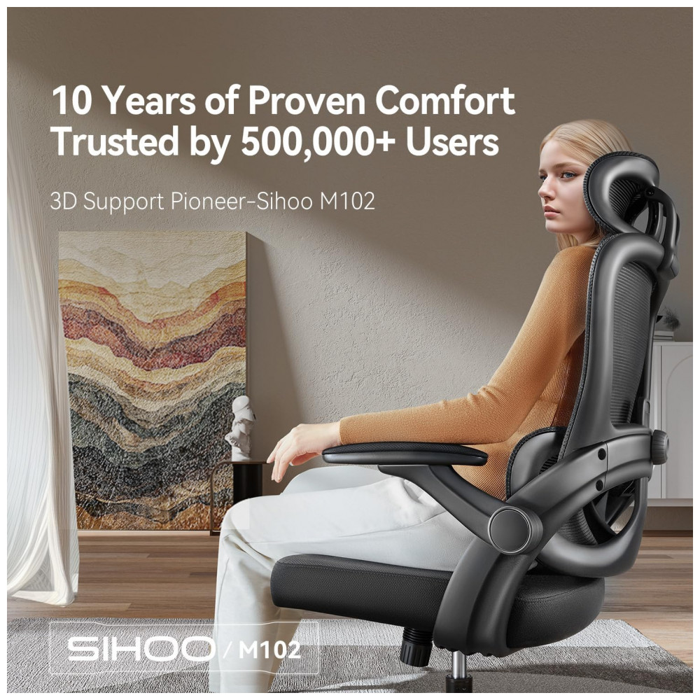 Cadeira Ergonômica de Escritório SIHOO M102C Apoio Lombar Independente Ajustável Encosto em Malha Braços 3D Reclinação 110-130°