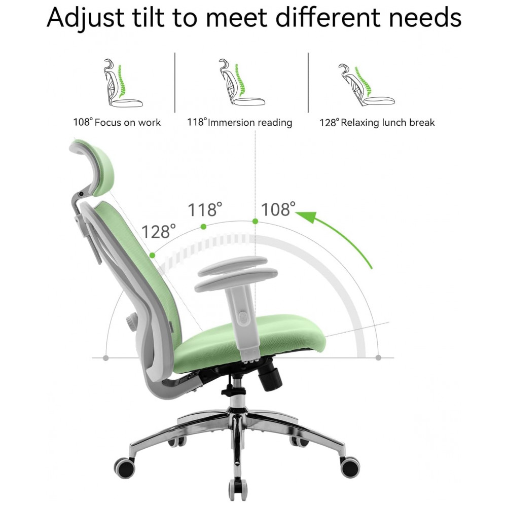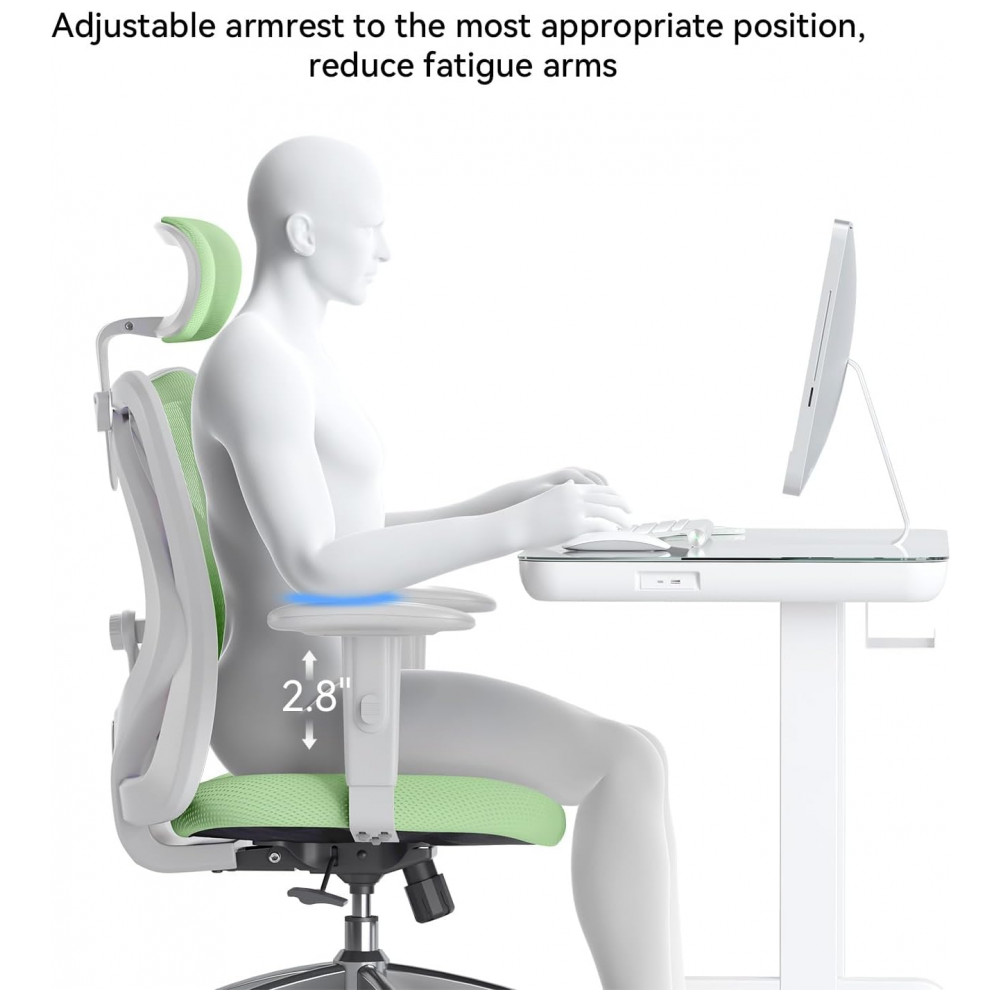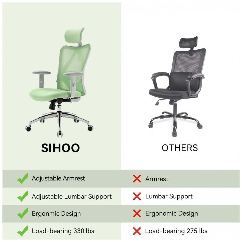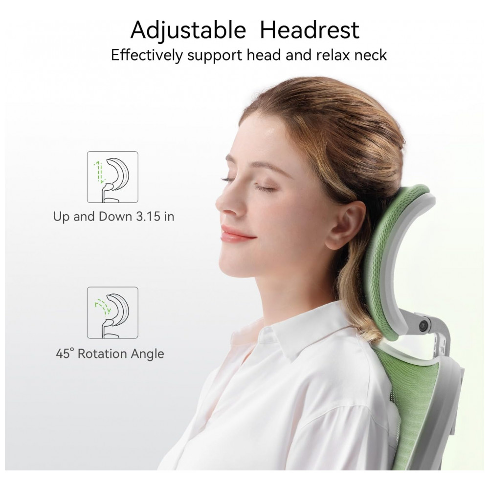 Cadeira Ergonômica de Escritório SIHOO M18 Verde Claro Apoio Lombar Ajustável Encosto Cabeça Regulável Malha Respirável Modelo M18-M181
