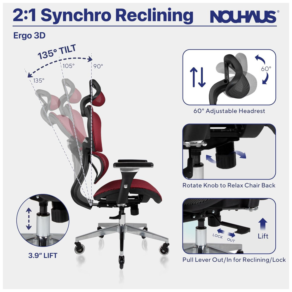 Cadeira ergonômica NOUHAUS borgonha