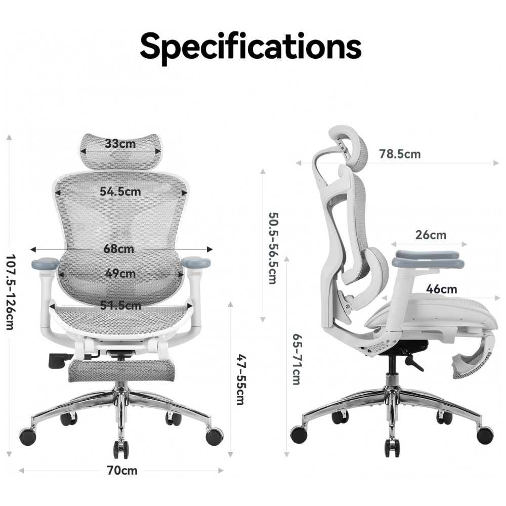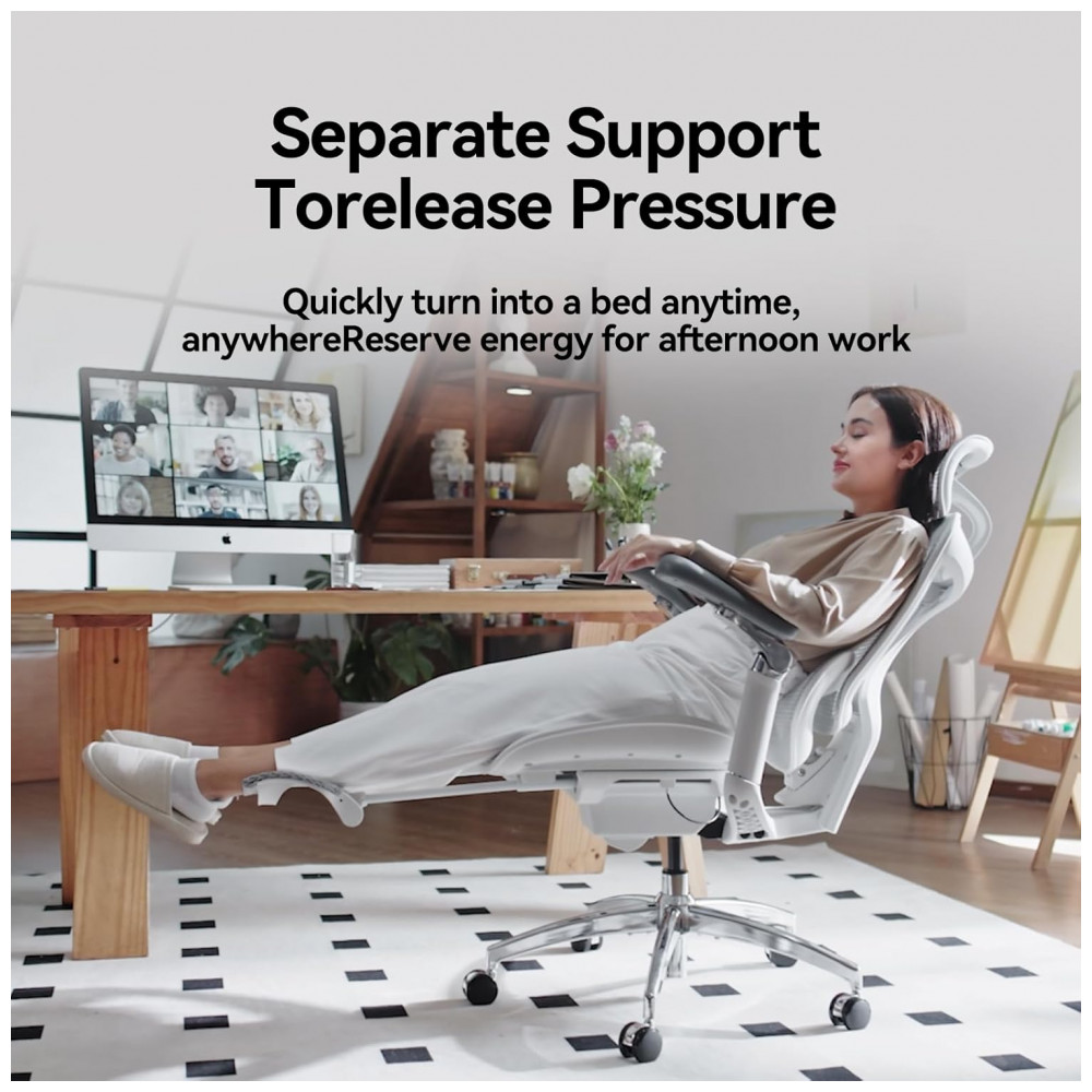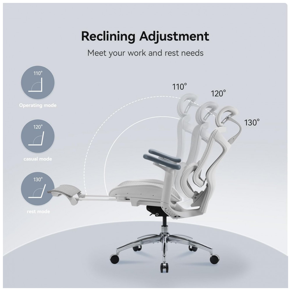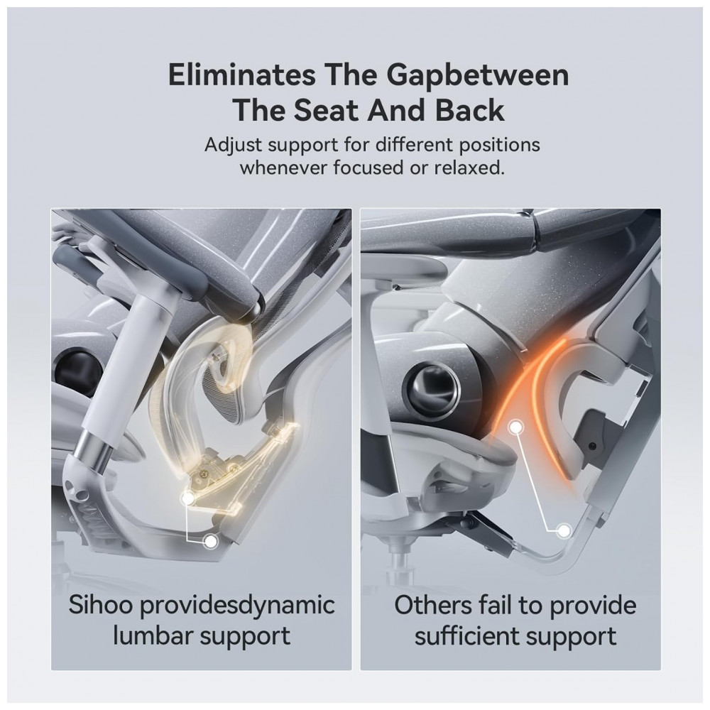 A cadeira ergonômica SIHOO Doro C300 incorpora um sistema de encosto dinâmico avançado que se ajusta automaticamente à curvatura natural das costas, proporcionando suporte contínuo durante movimentos. O encosto apresenta quatro ajustes de altura, com deslocamento vertical de 6 cm, adaptando-se a diferentes estaturas para alinhamento postural preciso. Os apoios de braço 3D ajustáveis em três direções permitem posicionamento personalizado durante o reclínio, combinados com suporte lombar adaptativo que acompanha os movimentos do usuário. A inclinação do encosto oferece três posições distintas (110°, 120° e 130°), com tecnologia de sensoriamento de peso que adapta a reclinação ao peso corporal para equilíbrio suave. Construída com malha respirável no assento e encosto, estrutura em polipropileno e elevador pneumático de 4 estágios certificado SGS, a cadeira atende normas europeias REACH e EN1335, além de certificação TÜV para segurança e durabilidade.