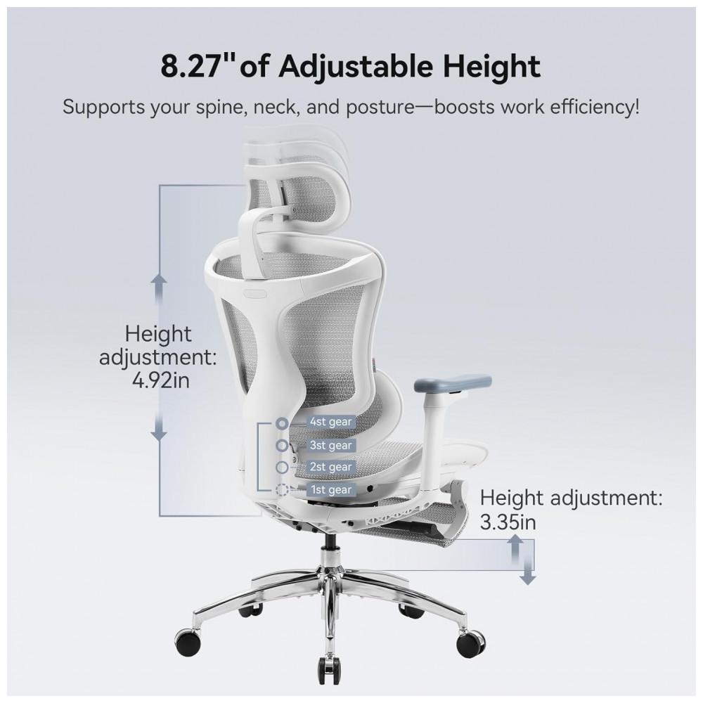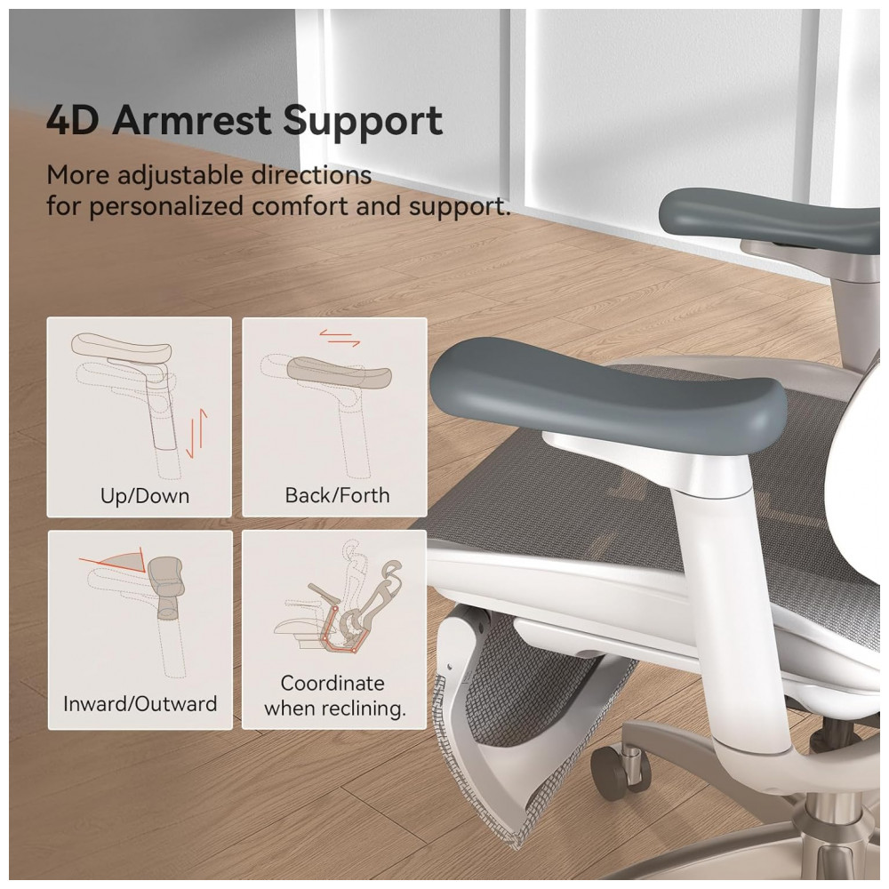 Cadeira Ergonômica SIHOO Doro C300 com Apoio para Pés Apoios de Braço 3D Ultra Suaves Suporte Lombar Dinâmico Encosto Ajustável Giratória para Escritório em Casa Grande e Alta (Cinza)