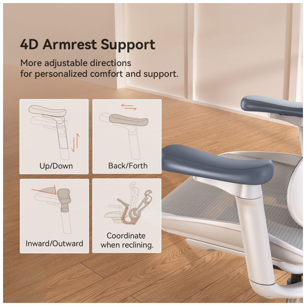Cadeira Ergonômica SIHOO Doro C300 com Apoios de Braço 3D Ultra Suaves Suporte Lombar Dinâmico Encosto Ajustável Giratória para Escritório em Casa Grande e Alta (Cinza)