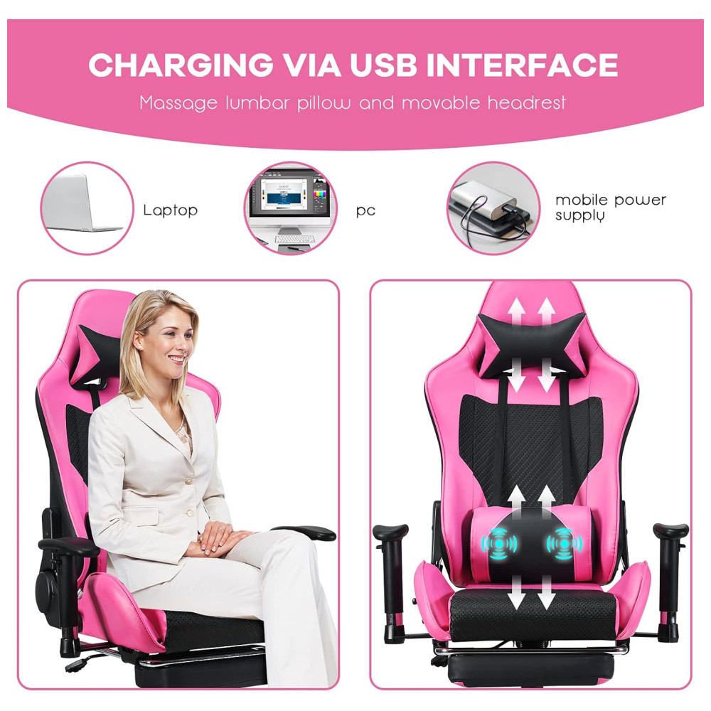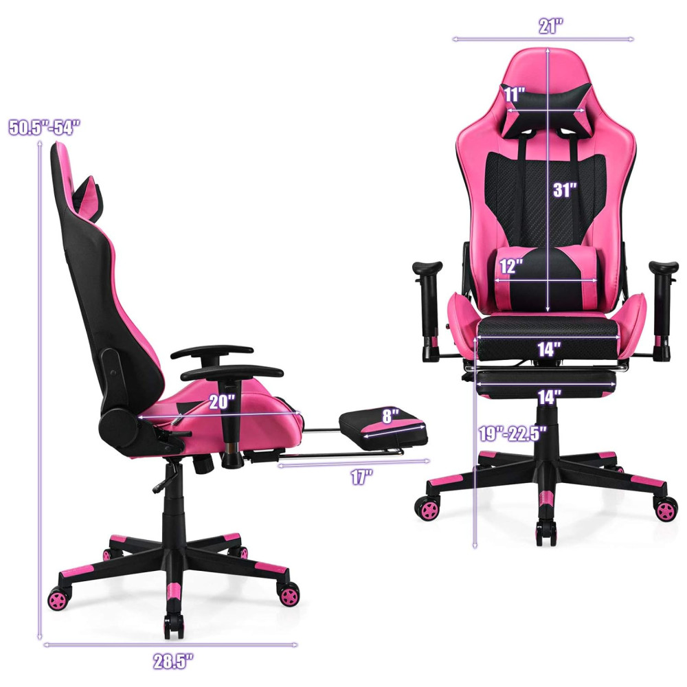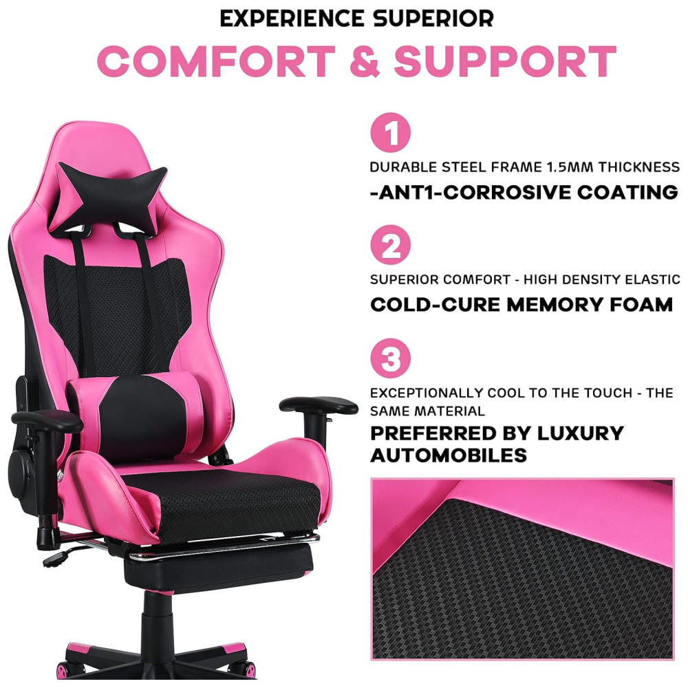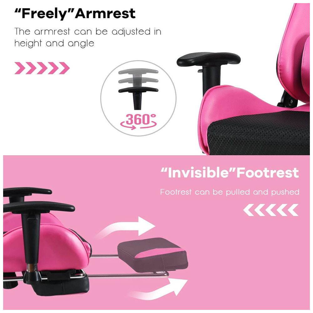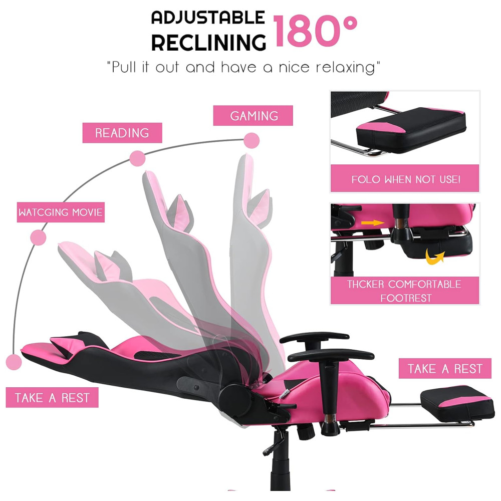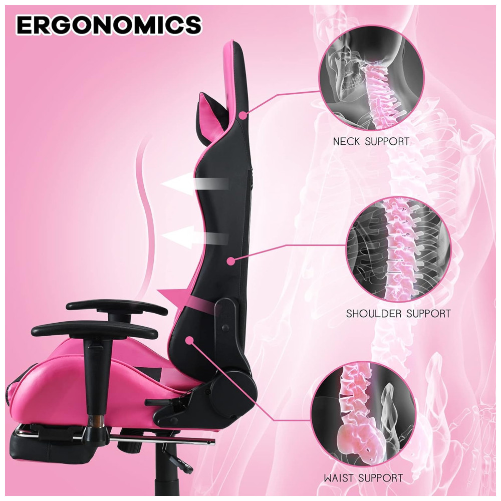 Cadeira Gamer Ergonômica Ajustável com Apoio para os Pés POWERSTONE Rosa