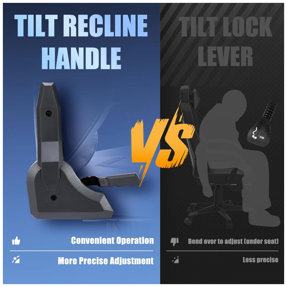 DESIGN ERGONÔMICO E AJUSTÁVEL Ajuste do encosto de 90 a 150 e altura do assento ajustável, adequado para uma variedade de cenários, pode ser como cadeira de escritório, cadeira reclinável ou cadeira giratória. Ergonomicamente projetado com almofadas lombares e de apoio de cabeça que proporcionam conforto sob medida. Por baixo, o botão de tensão de inclinação controla a tensão de reclinação, você pode modificá lo para atender às suas preferências pessoais
