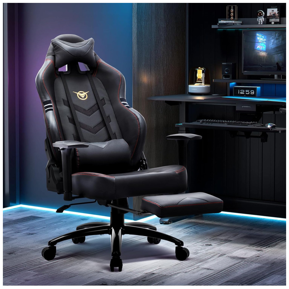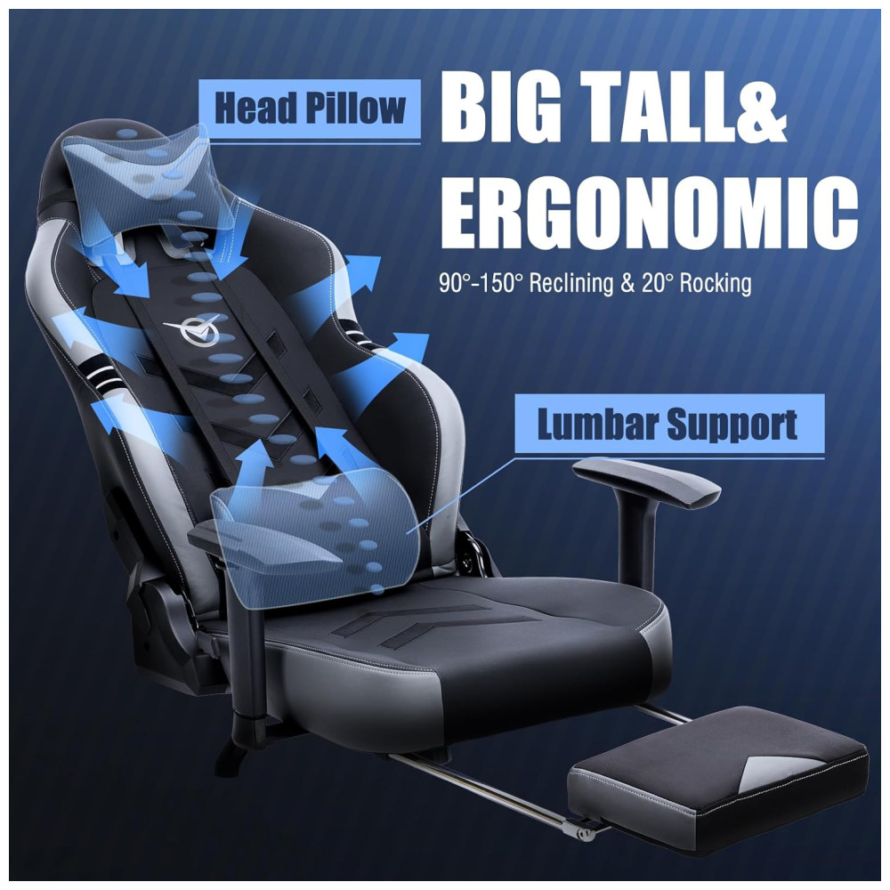 Cadeira Gamer Ergonômica com Apoio 3D para os Pés até 158 kg COLAMY Preto