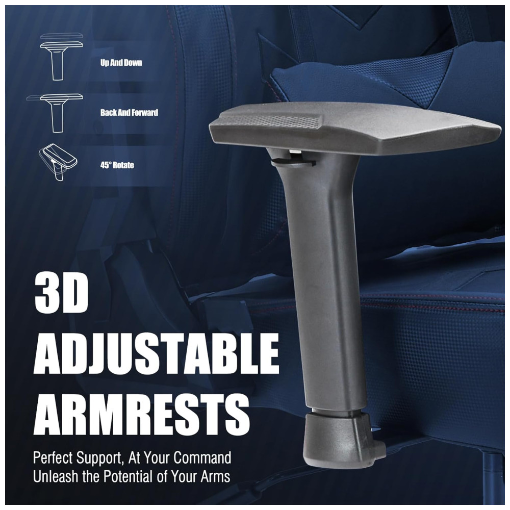 ATENÇÃO EXCEPCIONAL AOS DETALHES Área de assento e costas ampliadas, logotipos bordados e em relevo atraentes, zíper traseiro invisível, design bordado em tecido afixado criativo, braços ajustáveis em 3D, apoio de pernas retrátil, tudo isso combinado para tornar nossa cadeira de corrida não apenas agradável de se sentar , mas também uma alegria de se ver sente se como um campeão
