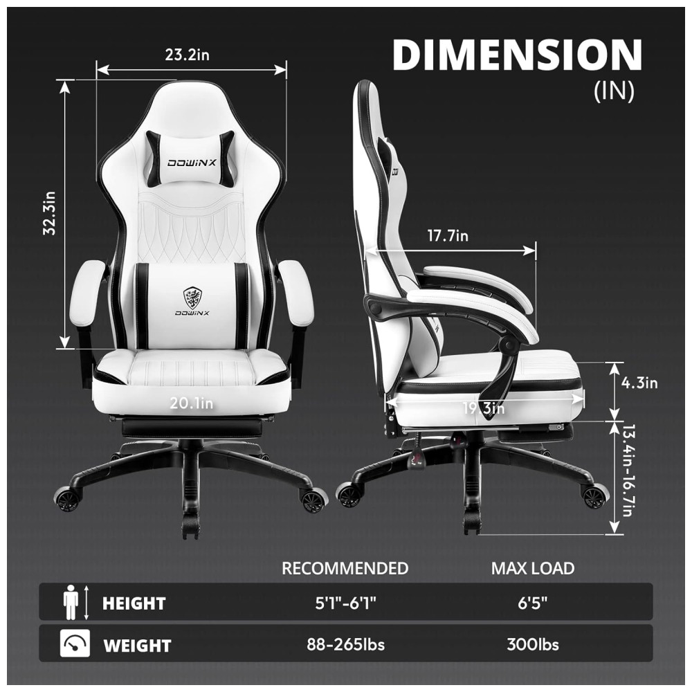 Cadeira Gamer Ergonômica com Apoio para Lombar e Cabeça Dowinx Branco