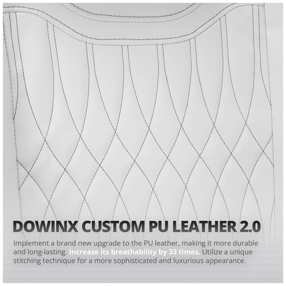 COURO PU ALTAMENTE RESPONSÁVEL Esta cadeira de jogo apresenta couro PU altamente respirável, proporcionando ventilação superior 33 vezes mais eficaz que o couro PU tradicional. O couro PU macio e flexível é costurado com habilidade para um nível excepcional de conforto, melhorando sua experiência geral de sentar.