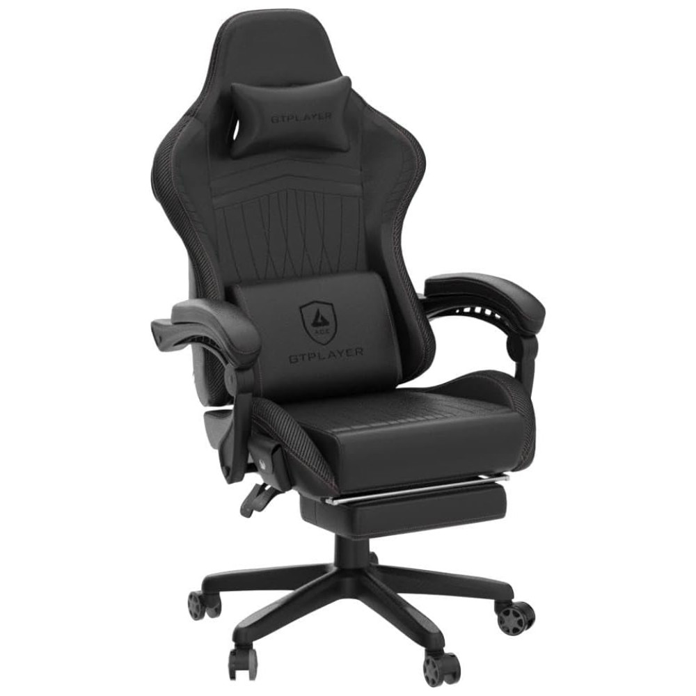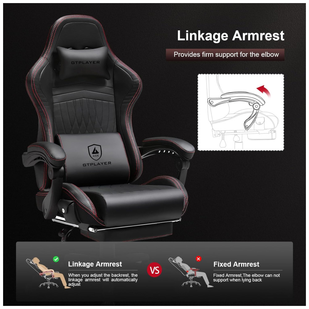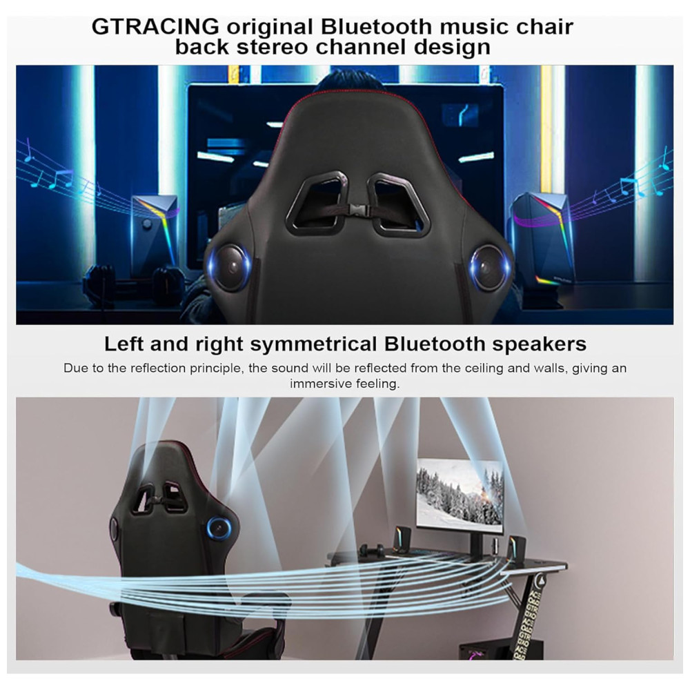 Cadeira Gamer Reclinável e Giratória com Alto Falantes Bluetooth e Apoio para Pés GTPLAYER Vermelho e Preto