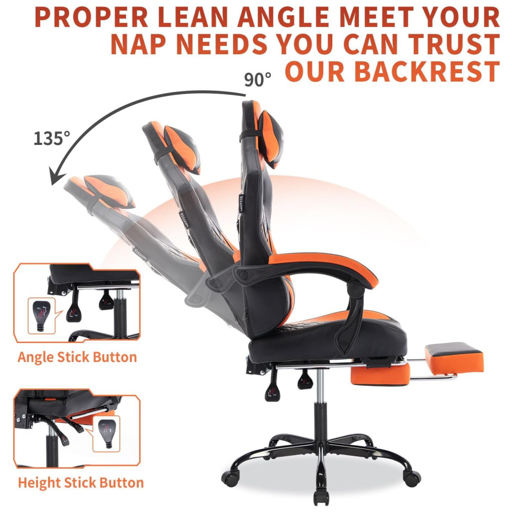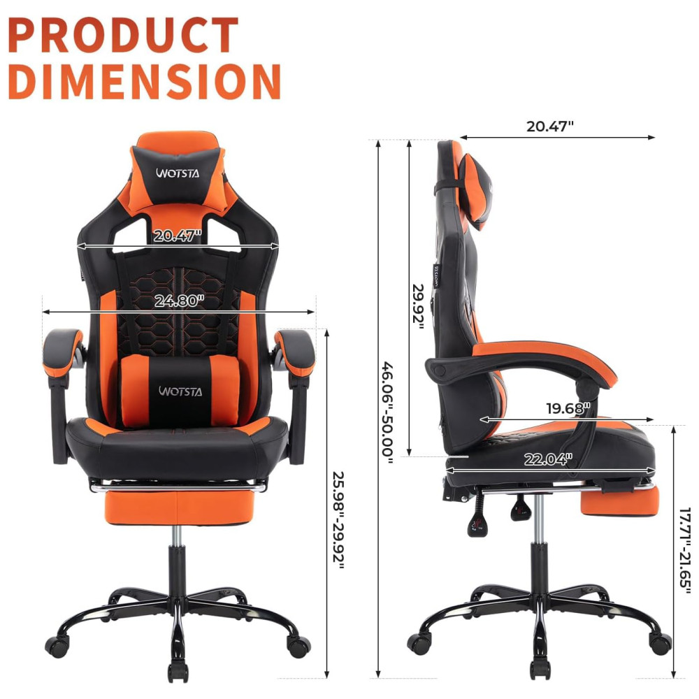 MATERIAL DE ALTA QUALIDADE Nossa cadeira de jogos com encosto alto é densamente acolchoada para o máximo conforto e couro PU premium, esponja e estrutura de aço espessa, esteja você gastando no escritório ou jogando no computador. a cadeira está equipada com apoio lombar livremente ajustável e uma almofada de apoio de cabeça para proteger a coluna e o pescoço,