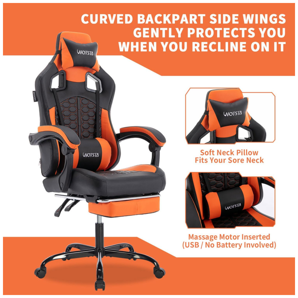 Cadeira Gamer Reclinável e Giratória com Apoio para Cabeça e Pés WOTSTA Preta e Vermelha