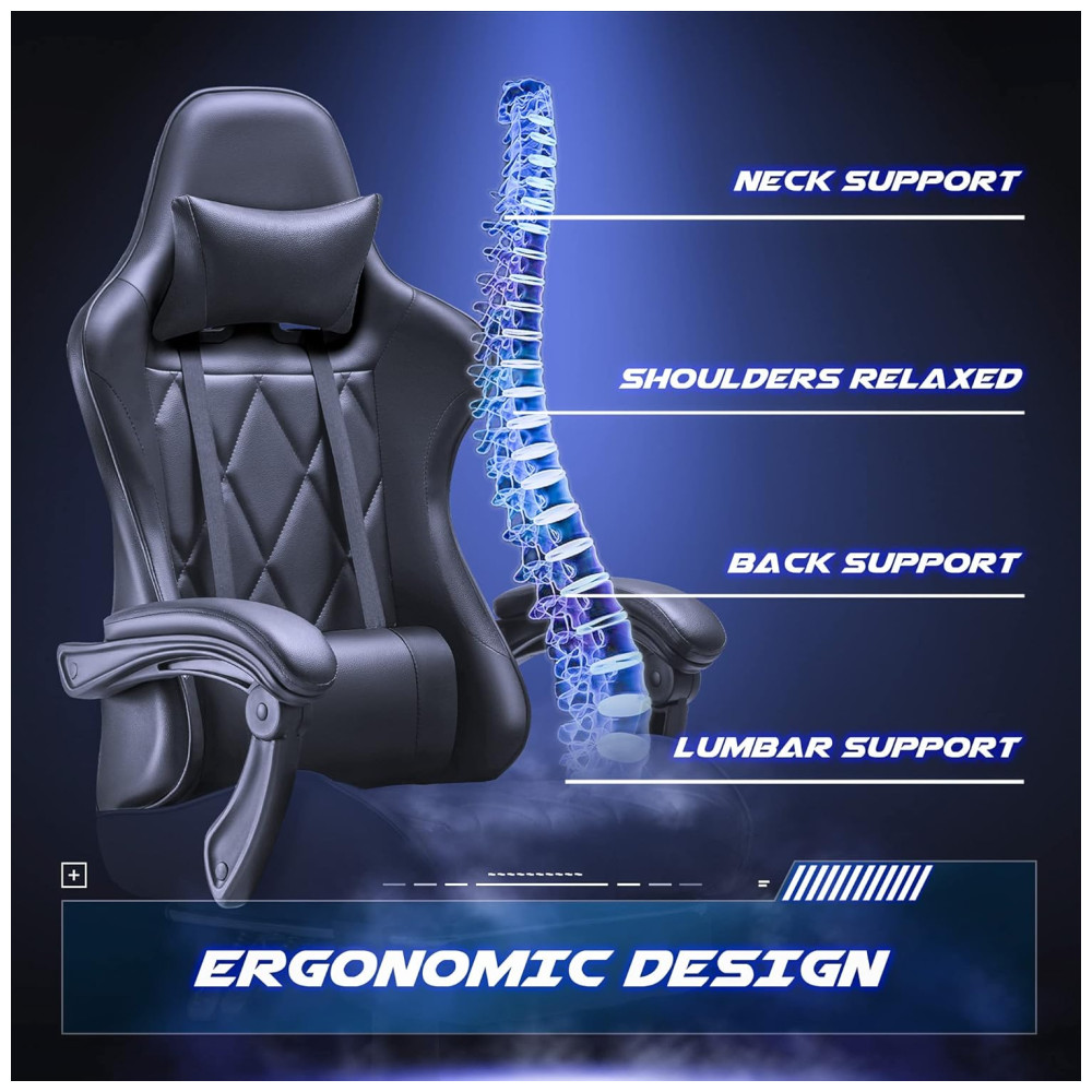 Perfeito para jogadores nos dedicamos a criar cadeiras de jogo confortáveis e de qualidade para jogadores profissionais. E com aparência elegante e design ergonômico, esta cadeira de jogos grande e alta é uma escolha fabulosa para adultos e crianças. Também é adequado para sua sala de estar, quarto, sala de jogos ou escritório. Escolha Homall para melhorar sua experiência de jogo e se divertir.