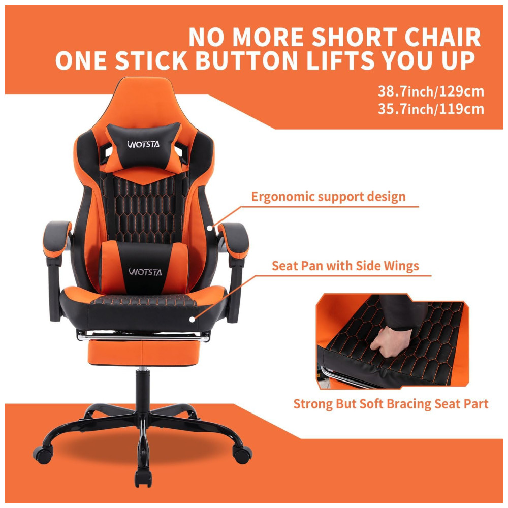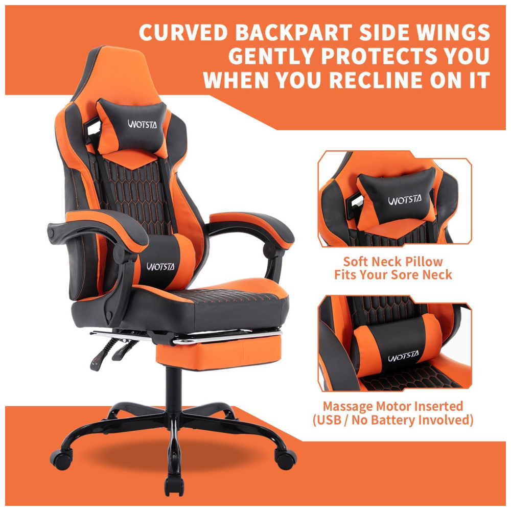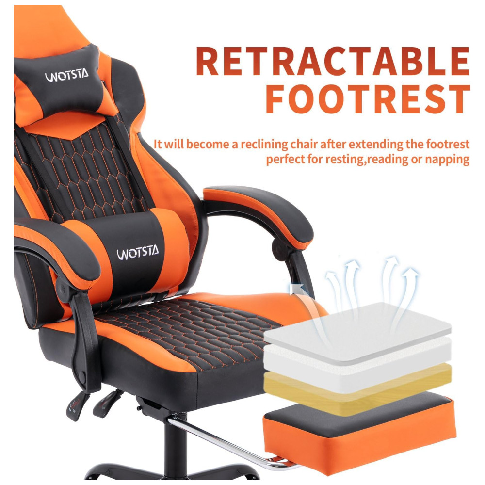 Cadeira Gamer Reclinável e Giratória com Apoio para os Pés e Cabeça WOTSTA Preta e Laranja