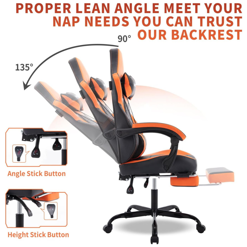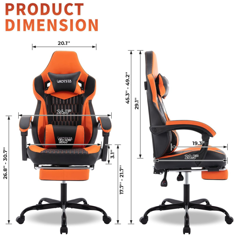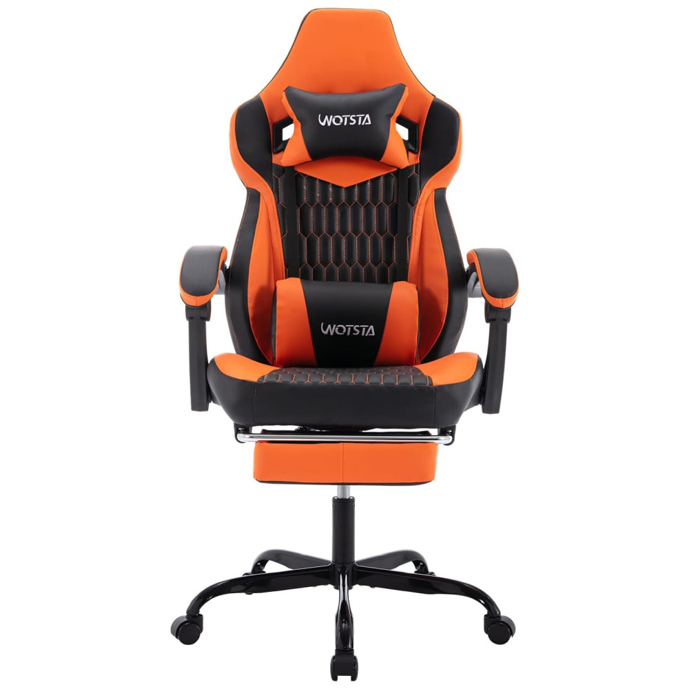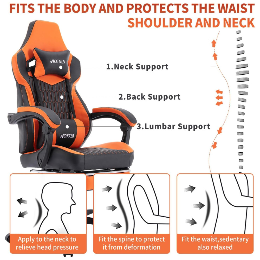 Cadeira Gamer Reclinável e Giratória com Apoio para os Pés e Cabeça WOTSTA Preta e Laranja