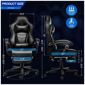Cor Preto. Descrição Este estilo de corrida reclinável de cadeira de videogame, projetado para oferecer uma combinação de conforto luxuoso e estilo de alto desempenho. Equipada com um travesseiro de cabeça removível e almofada lombar e um mecanismo reclinável embutido de 90 a 170 graus para trás, esta cadeira oferece conforto extra nesses longos dias de trabalho. O apoio de braço ajustável e a altura do assento atenderão à maioria das suas necessidades. E o design giratório de 360 graus e as 5 rodas facilitam o deslizamento livre sobre superfícies de madeira ou carpete. É perfeito para decorar seu escritório em casa, sala de jogos corporativos com esta cadeira. O pacote incluiu 1 × cadeira de jogos 1 × Almofada para encosto de cabeça e almofada lombar 1 × Apoio para os pés 1 × Instruções de instalação Capacidade 150kg.