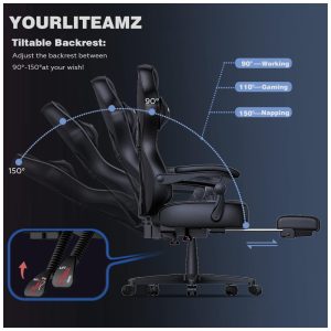 Cadeira Gamer YOURLITEAMZ Couro PU Reclinável Ergonômica Preto