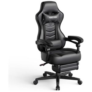 Cor Preto. Descrição Este estilo de corrida reclinável de cadeira de videogame, projetado para oferecer uma combinação de conforto luxuoso e estilo de alto desempenho. Equipada com um travesseiro de cabeça removível e almofada lombar e um mecanismo reclinável embutido de 90 a 170 graus para trás, esta cadeira oferece conforto extra nesses longos dias de trabalho. O apoio de braço ajustável e a altura do assento atenderão à maioria das suas necessidades. E o design giratório de 360 graus e as 5 rodas facilitam o deslizamento livre sobre superfícies de madeira ou carpete. É perfeito para decorar seu escritório em casa, sala de jogos corporativos com esta cadeira. O pacote incluiu 1 × cadeira de jogos 1 × Almofada para encosto de cabeça e almofada lombar 1 × Apoio para os pés 1 × Instruções de instalação Capacidade 150kg.