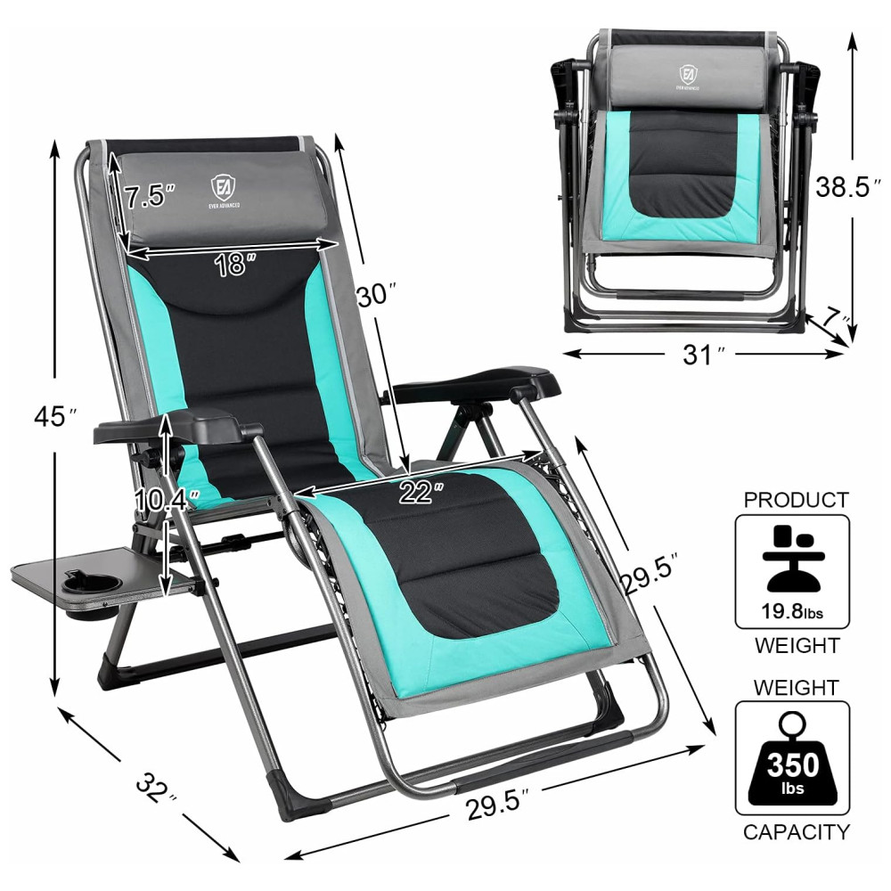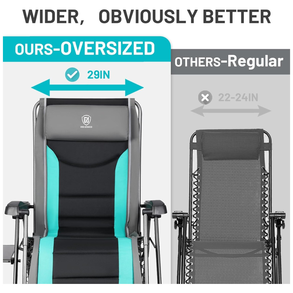 Cadeira Reclinável Ajustável Gravidade com Apoio de Cabeça EVER ADVANCED Oversize XL Zero Gravity Recliner Preto