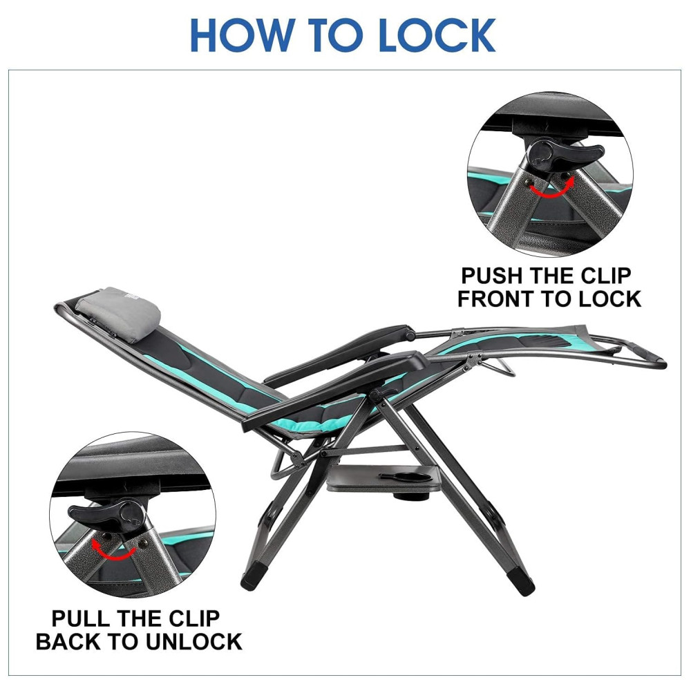 SISTEMA DE TRAVAMENTO Esta poltrona reclinável de gravidade zero é projetada com um sistema de travamento e pode ser ajustada para qualquer posição desejada de 0 170 graus